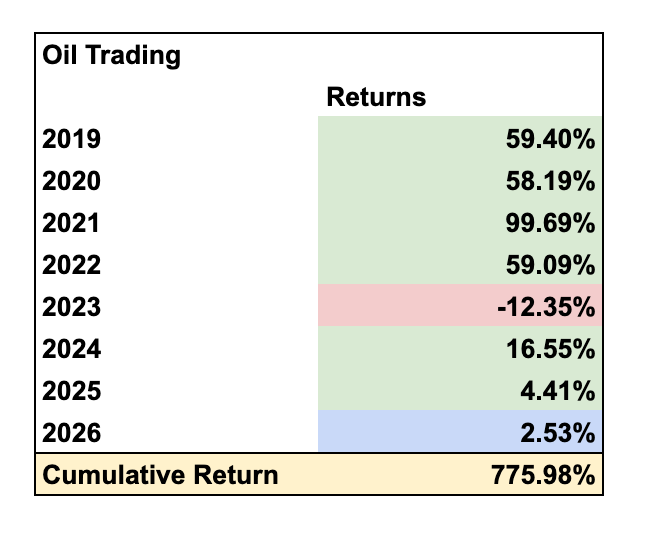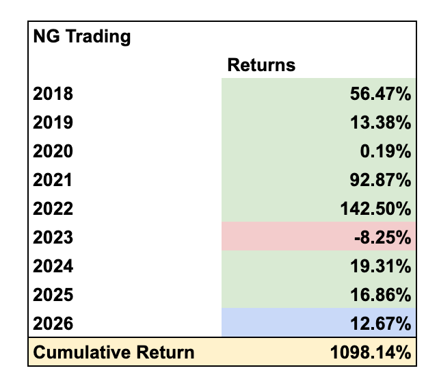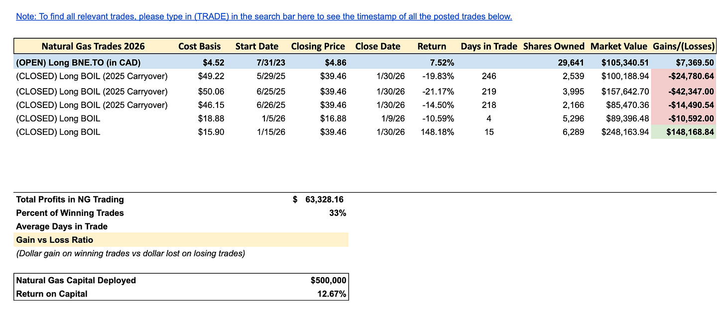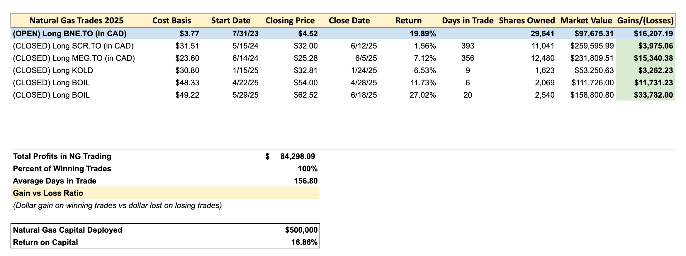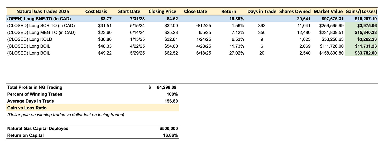 Note: During periods of inactivity in the NG trading portfolio, we copied our energy idea trades from the oil trading portfolio (please see detailed breakdown below).