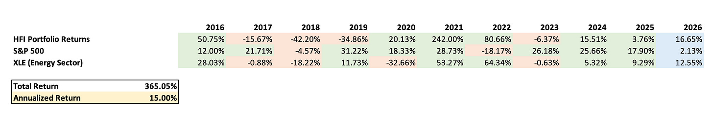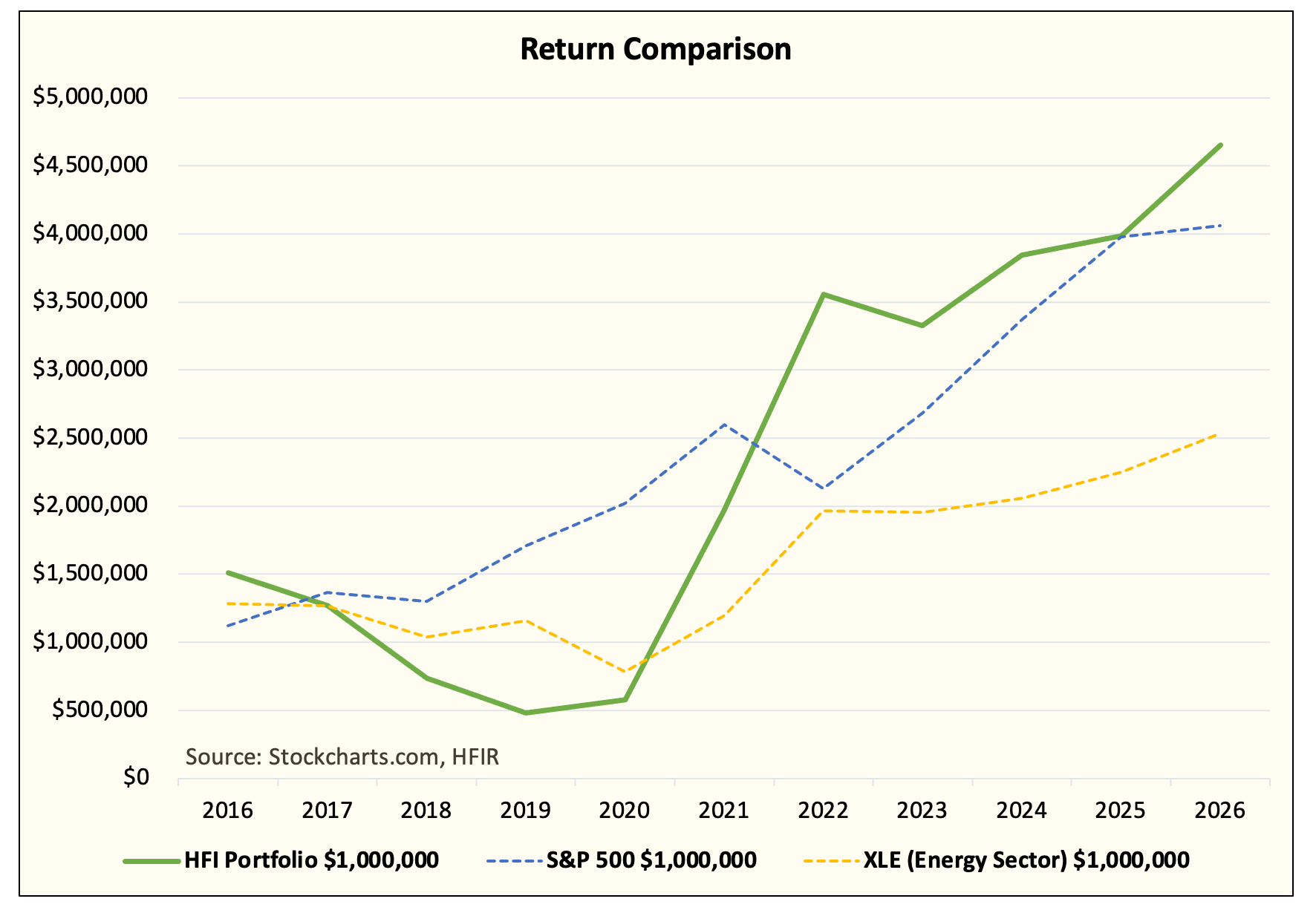 As a subscriber, you will also receive frequent updates on what we are doing with our positions. This is how the HFI Portfolio has performed since we started investing in energy.