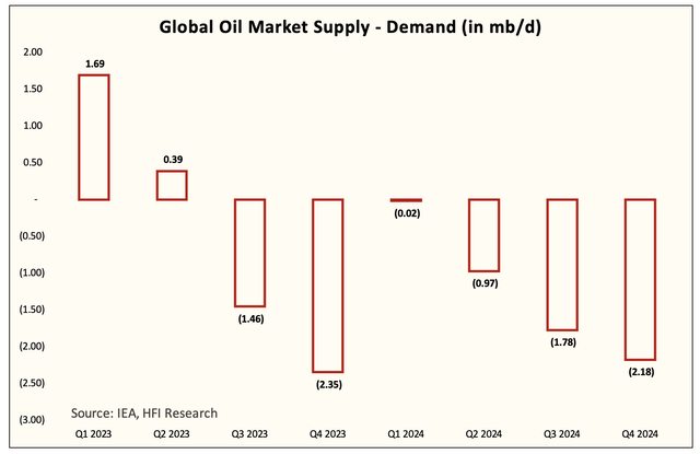 Saudi and Russia's participation is key to maintaining a large deficit this year, but by H2 2024, spare capacity will need to be materially reduced to avoid catastrophe.
