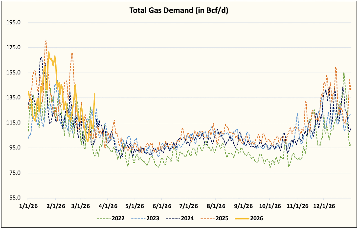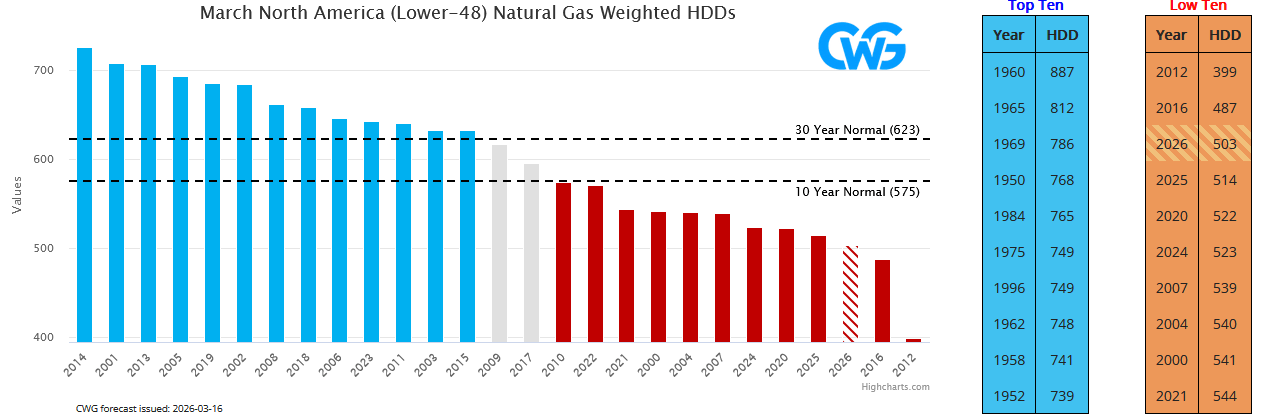 On the fundamental front, we have officially seen the peak in heating demand for this winter. Even if April turns out colder-than-normal, we will not see heating demand get anywhere near the highs we saw in January.