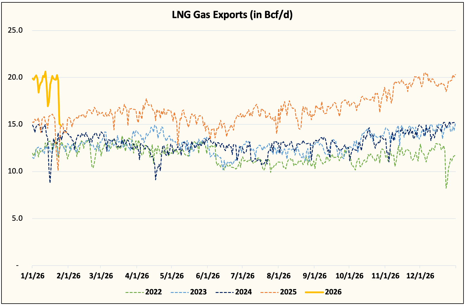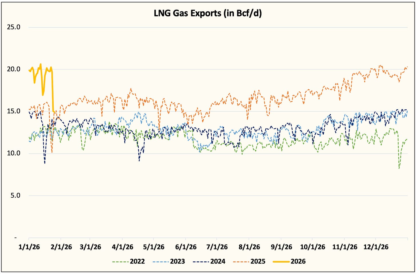 LNG gas exports dropped ~5 Bcf/d.