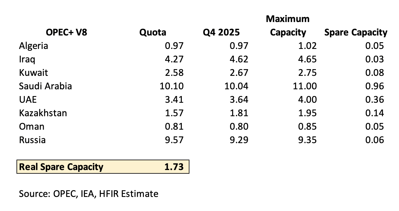And our conclusion on the finding is that the effective spare capacity inside OPEC+ is 1.73 million b/d.