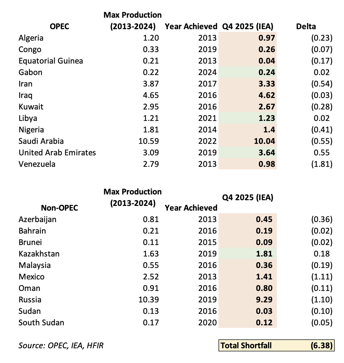 All-in, Iran produces ~5 million boe/d total liquids, which is extremely meaningful for the market. Any prolonged disruptions to the existing regime imply that supply security will be at risk, and the geopolitical premium in the oil market will spike.
