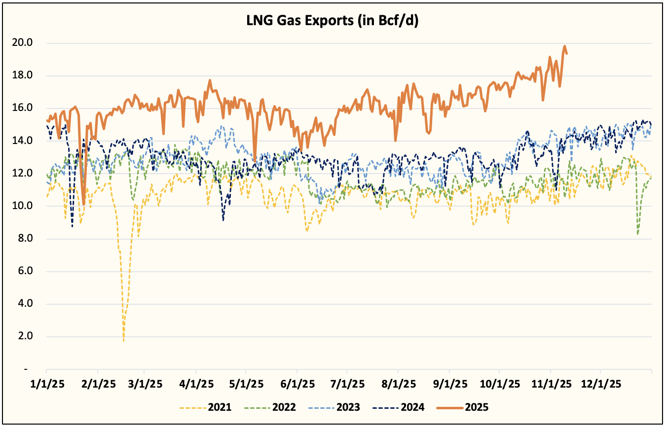 Since then, LNG feedgas surged to ~20 Bcf/d over the weekend while Lower 48 gas production averaged around ~107 Bcf/d.