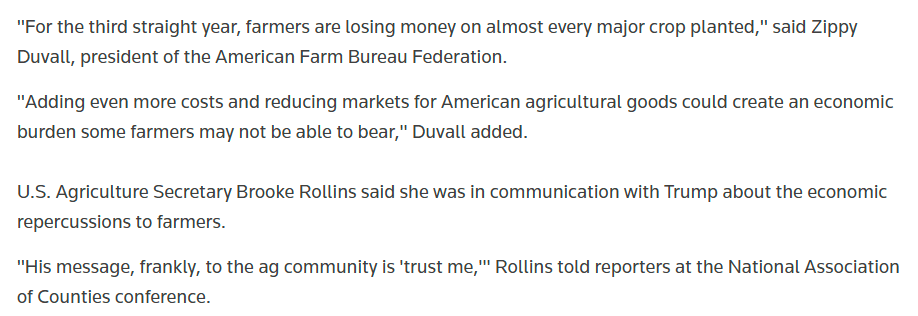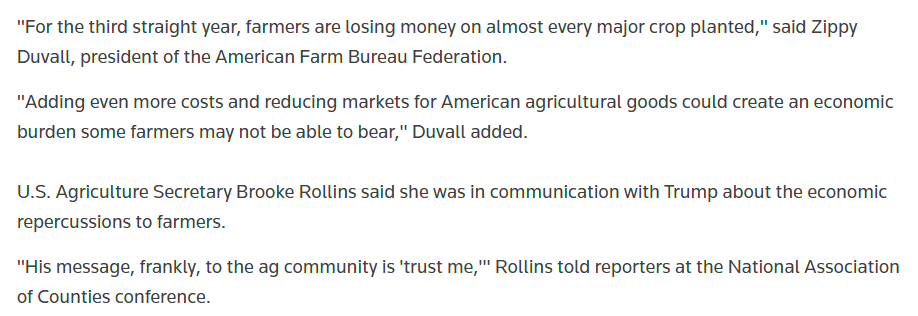 Trump’s tariffs are hurting the domestic agriculture industry. I have spoken with some of the top agriculture executives in the country and can confirm that their industry is concerned.