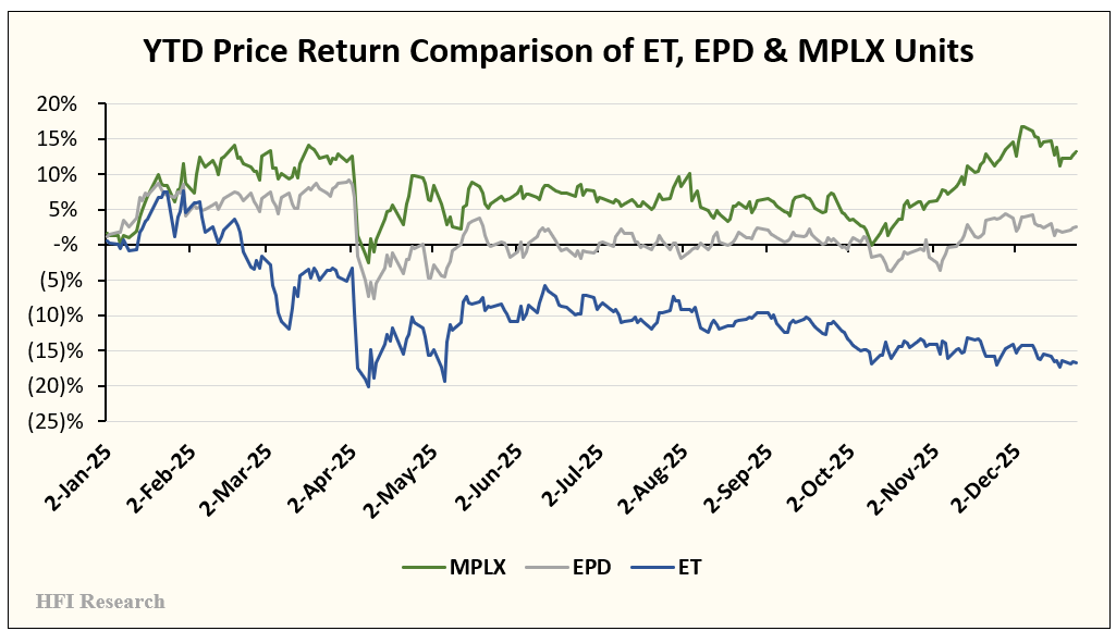 Energy Transfer (ET) units have continued to underperform peers in 2026. Both MPLX (MPLX) and Enterprise Products Partners (EPD) have fared significantly better.