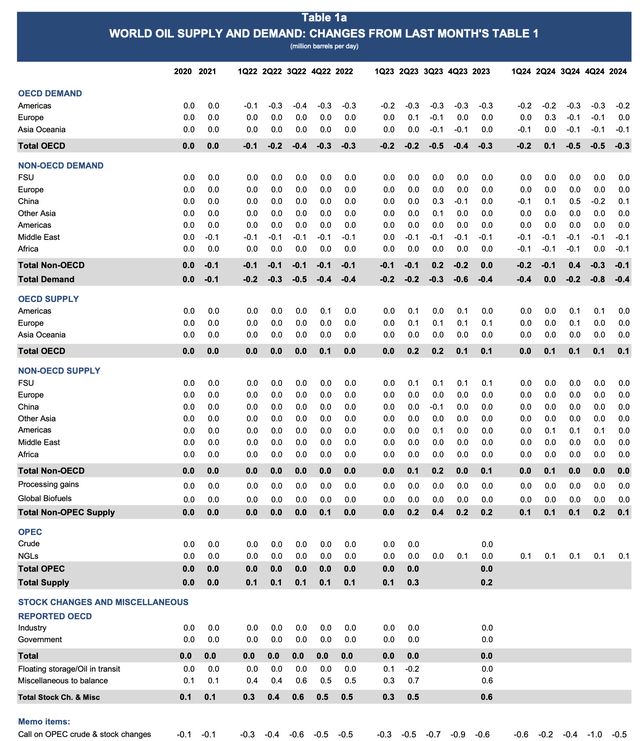 IEA revised lower 2022 base demand by 400k b/d, which automatically revises down 2023 demand by 400k b/d and 2024 by 400k b/d.