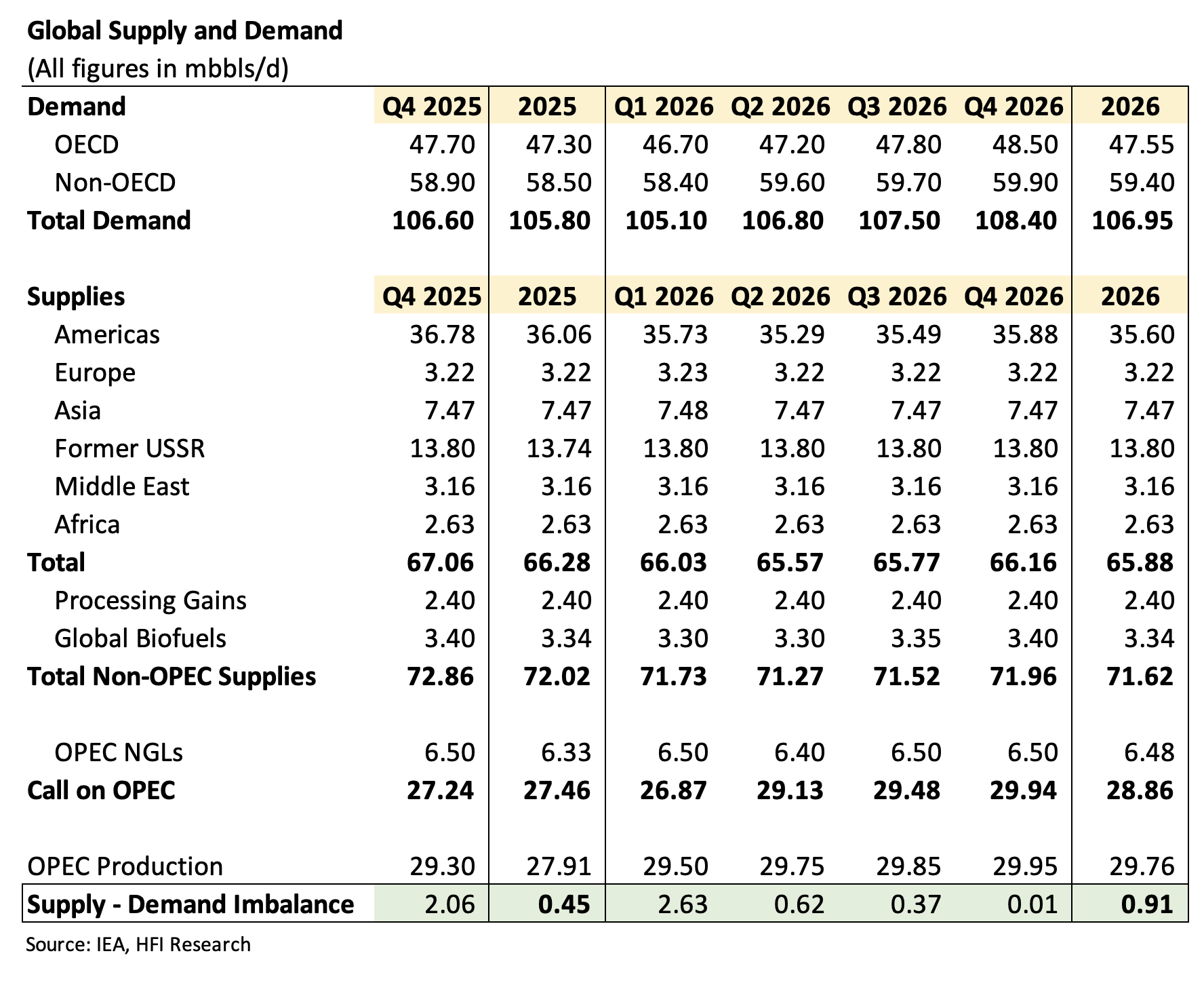 From a timing perspective, our global oil supply & demand pinpoint the turning point in oil market fundamentals in H2 2026.