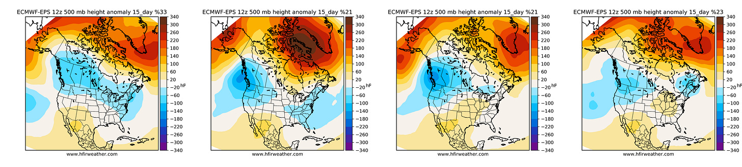 Now for those of you unfamiliar with what this pattern shows, it is normally associated with a "very" bullish weather set-up. What you typically want to see in the "holy grail" of bullish weather is for massive red in both Alaska and Greenland. This blocking pattern allows the cold air to be trapped in the Lower 48 generating much higher than normal heating demand.
