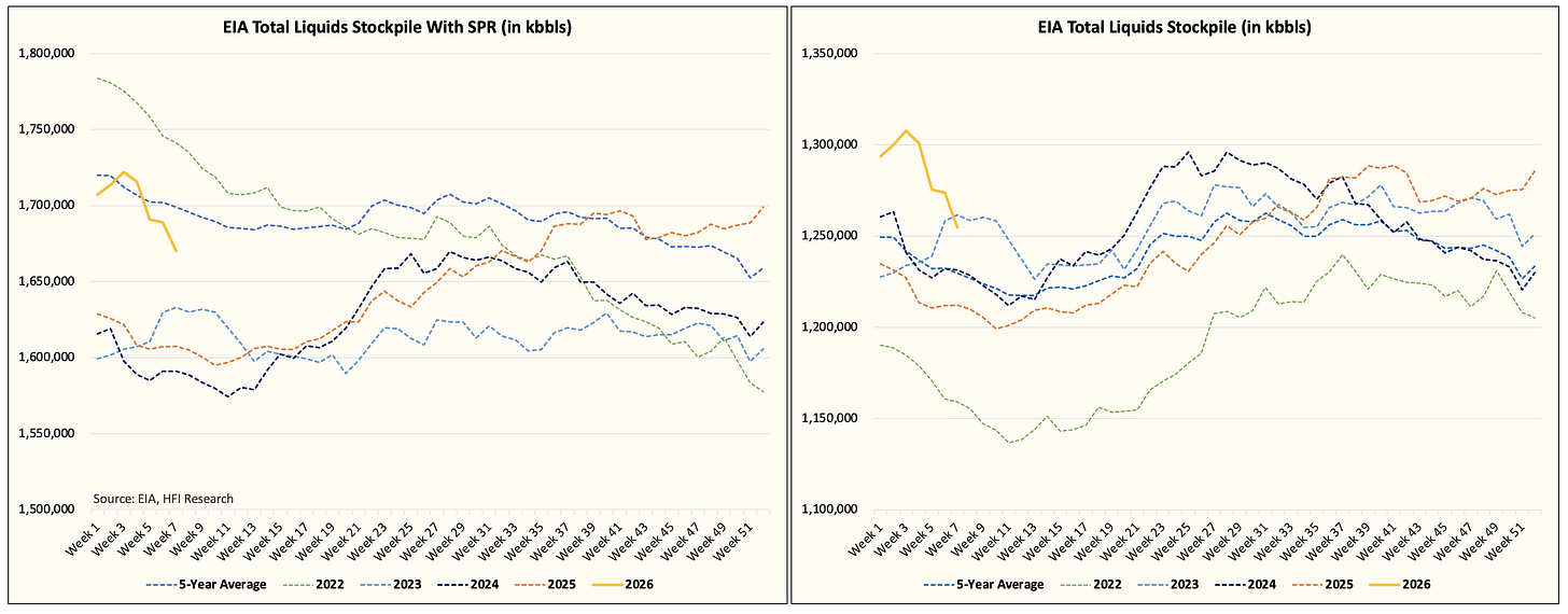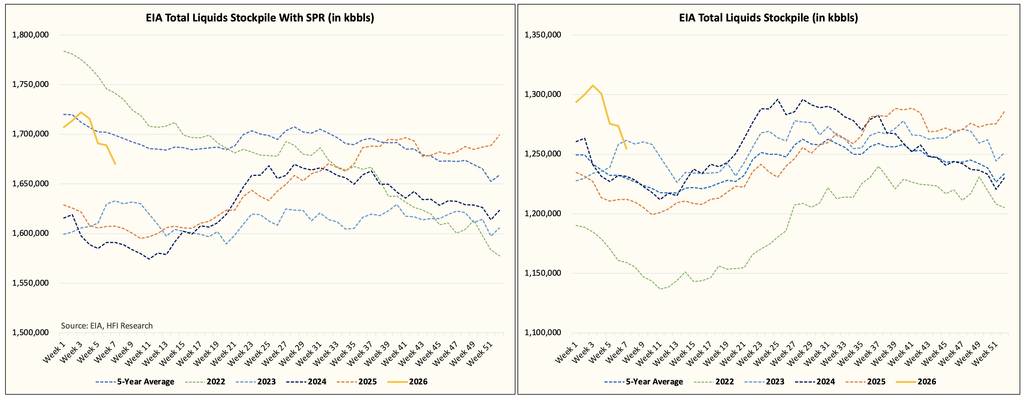 This is in stark contrast to the massive builds everyone had coming into 2026. As we said in January, most of the people who follow the oil market have no idea how much a cold blast impacts supply & demand balances. In this case, both the freeze-off in US crude oil production and spike in heating-related demand have pushed balances to the bull side.
