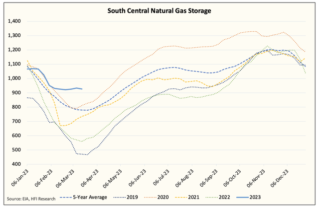 This is the most bearish chart for natural gas today. South Central gas storage remains bloated. And as we exit the heating demand season, this chart won't look any better. We are going to see storage injections in 2 EIA reports, so the surplus will worsen.