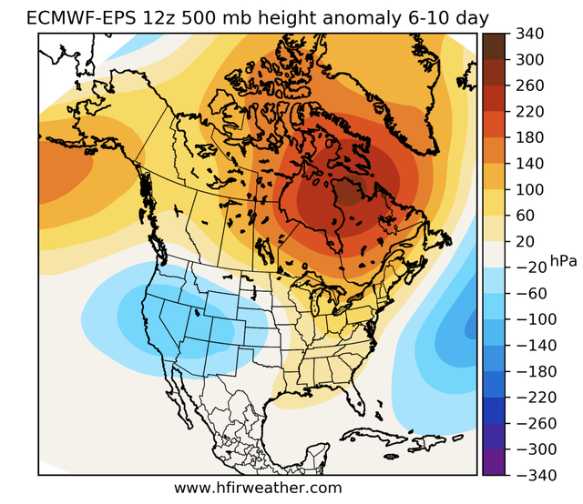 The 6-10 day outlook above, which was previously expected to be bullish, turned out to be outright bearish with the large blocking pattern up North moving more South and preventing the cold from going into the Northeast.