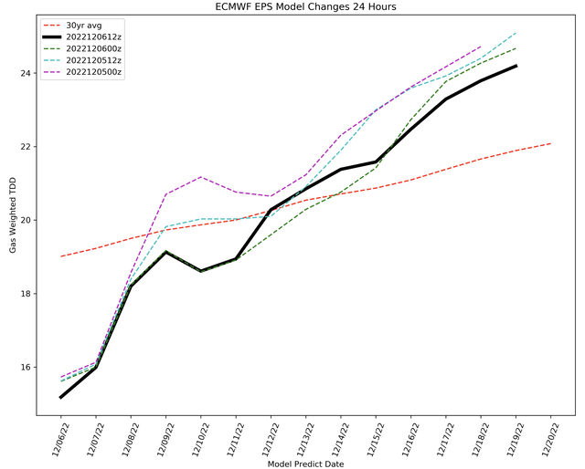 As you can see from the TDD chart, we are seeing the most bearish outlook taking place now followed by a gradual shift back to colder-than-normal weather later.