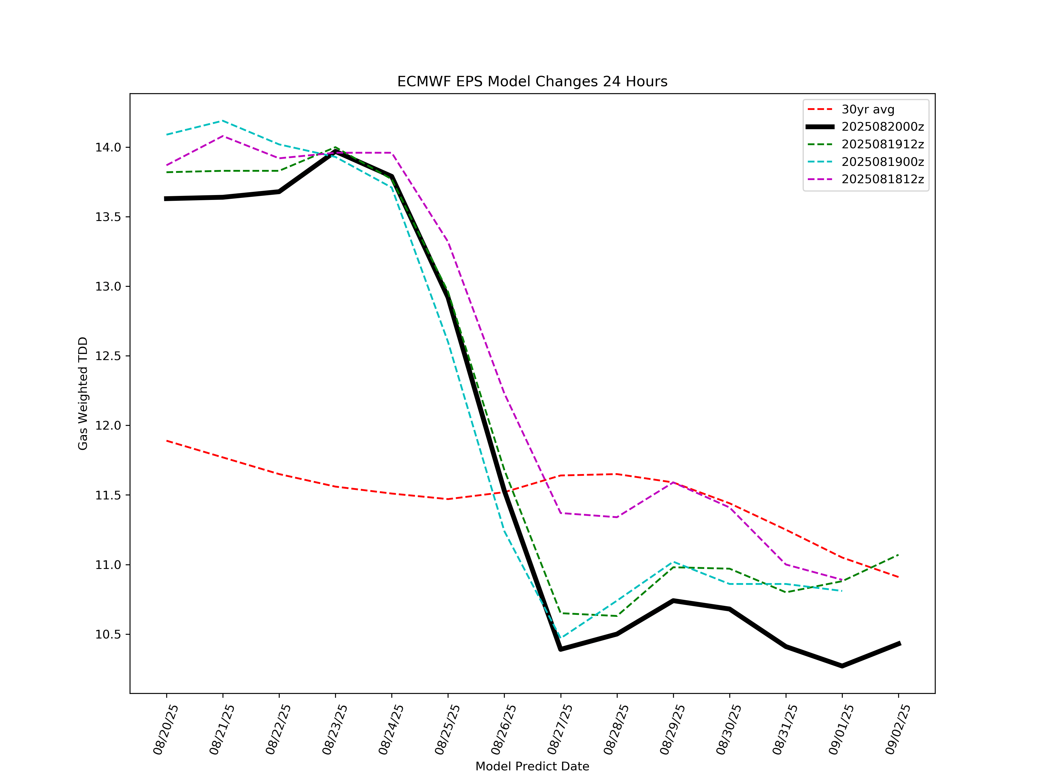 Looking at the TDD chart, you can see the material drop-off in cooling demand starting on August 26. From a weather model standpoint, this is what it looks like.