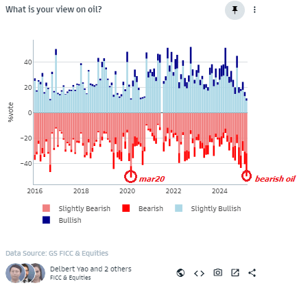The irony is that for oil specialists, the more granular the detail, the more you get pulled away from the broader sentiment in the market. Every generalist today is looking at the possibility of an incoming recession, while oil specialists are fixated on things like refining margins, high-frequency inventory, real-time US crude oil production, and things that actually move oil market fundamentals.