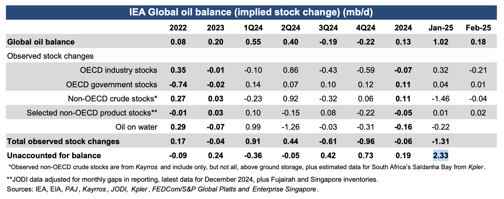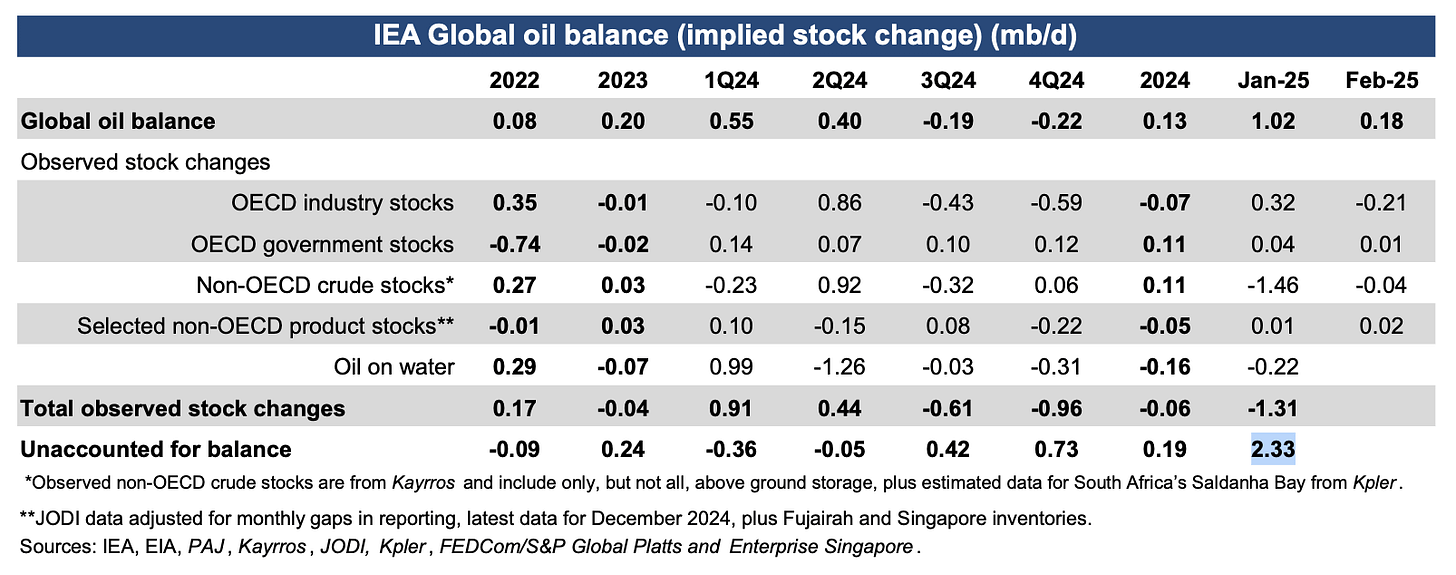 The magic fairy dust that eliminates all deficits. I mean just look at 2024 balances where observed inventory changes showed a decline of 0.06 million b/d, but IEA penciled in a build of 0.13 million b/d (from +0.19 million b/d of unaccounted for balance).