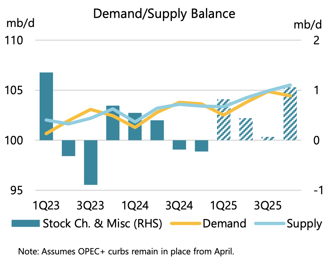 Good news: Oil market fundamentals are trending in the direction that we thought they would (Q1 balances to show a draw).