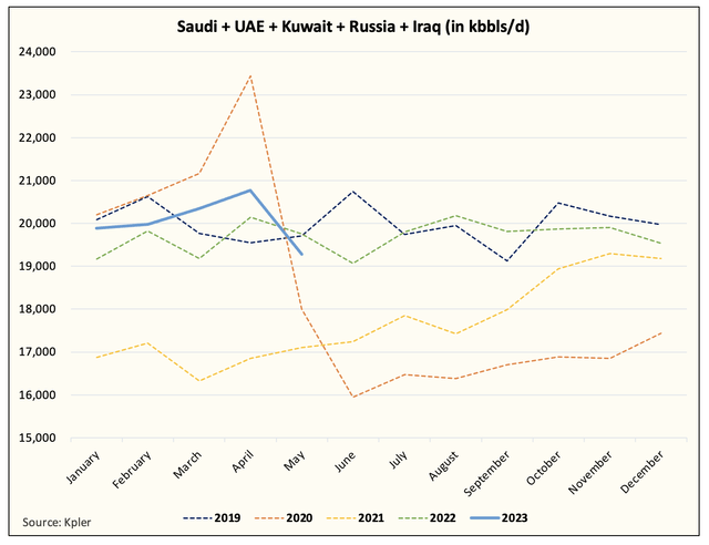 Total drop month-over-month is around ~1.5 million b/d and if you break down the exports further, the entirety of the decline is from the Saudis.