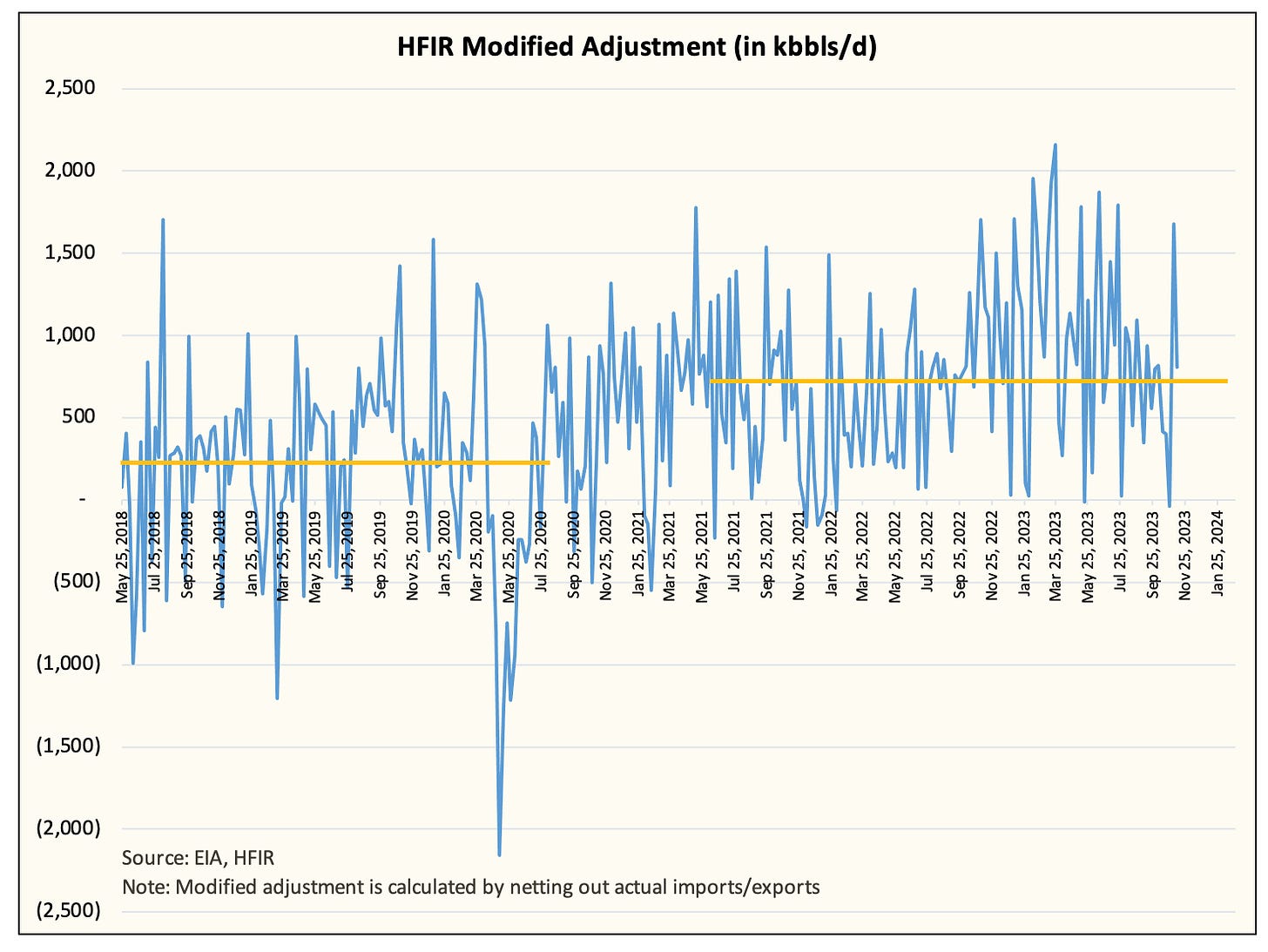 But one thing you will notice about the modified adjustment table is that in the early part of 2023, there was a prolonged period of elevated modified adjustments. This is because EIA was materially underreporting US oil production in the weekly reports. As a result, our modified adjustment does not take into account what EIA is reporting for US oil production. Instead, our US oil production tracker takes that into account.