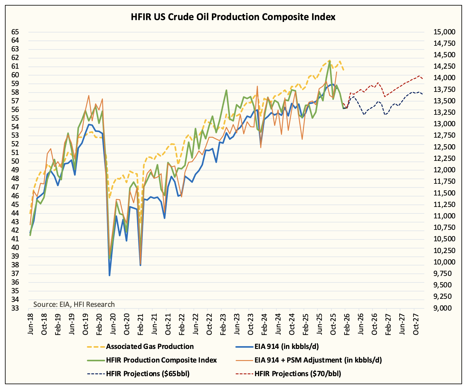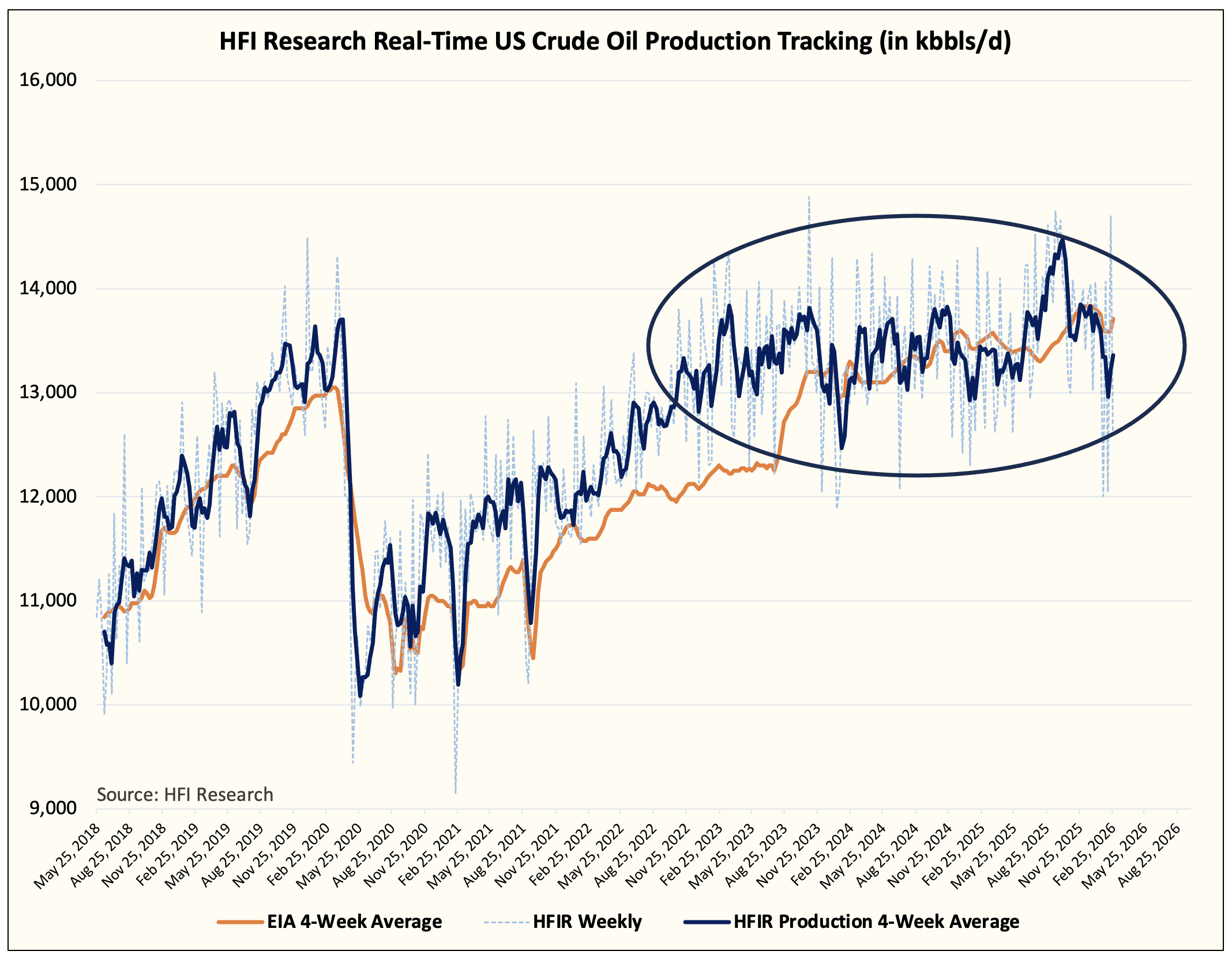 At HFIR, we track US crude oil production on a real-time basis. And as you can see in the chart above, EIA has been lagging our production estimate since 2022. It wasn’t until late last year that EIA is now firmly above our estimate, which implies that US crude oil production is overstated.
