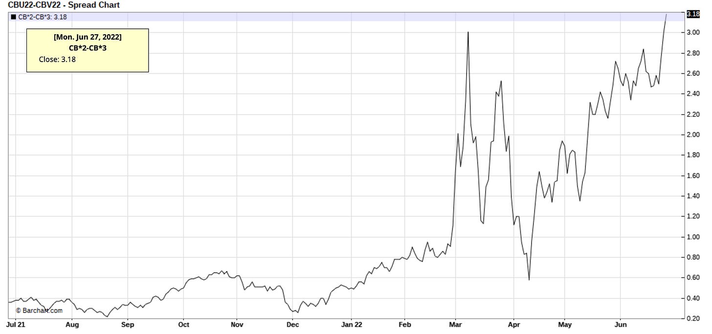 Since then, oil prices have rebounded nicely with the August contracts now trading at $110/bbl. And looking at all of the updated physical market signals below, the oil market is very tight despite worries over a recession.
