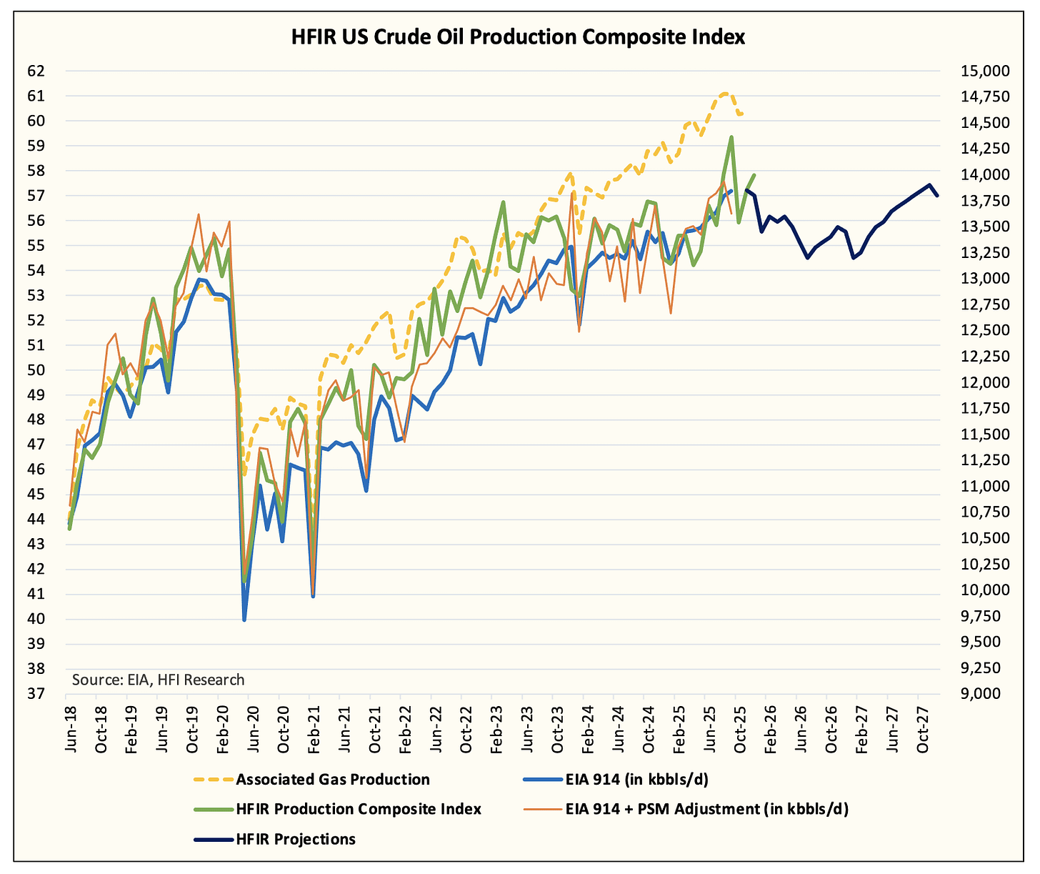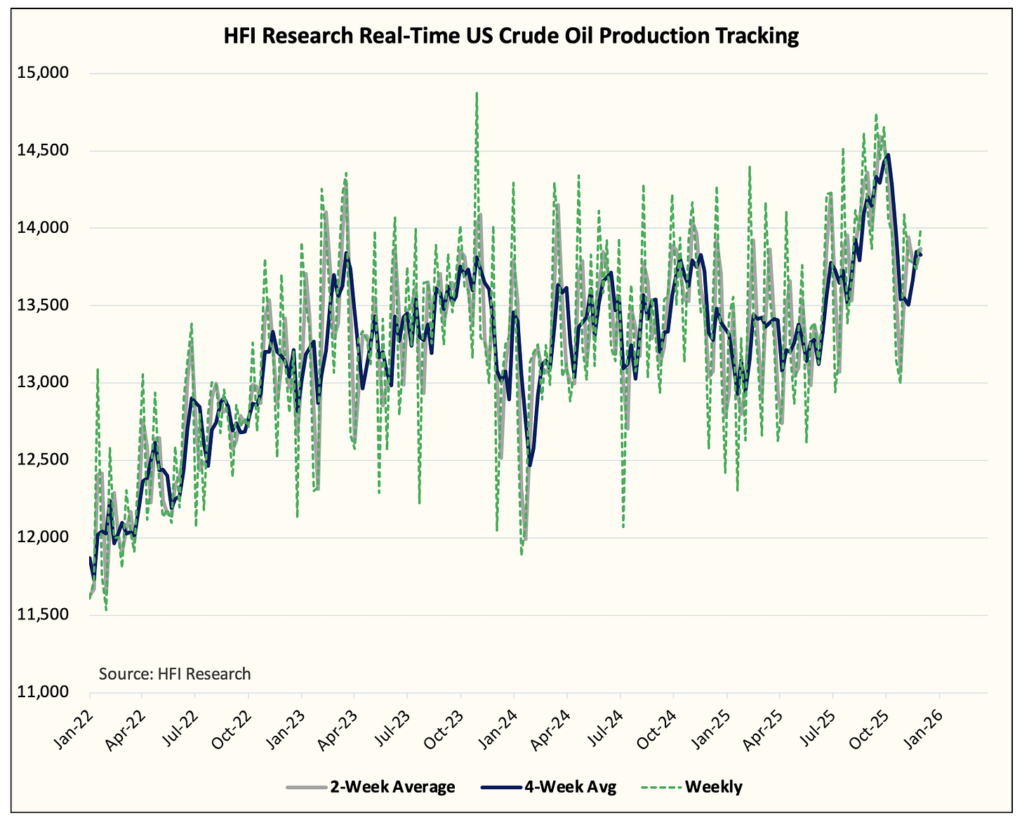 In other words, our real-time data matches the EIA data. As a result, we are very confident that US crude oil production today is close to ~13.85 million b/d.