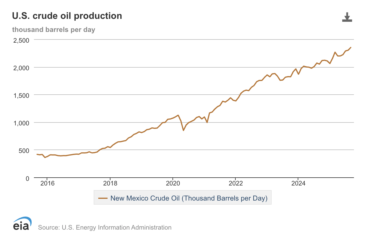 Now if you go to the EIA 914 report where it breaks down all of the crude production by state, you will see that New Mexico has been responsible for the material growth we are seeing out of the US.
