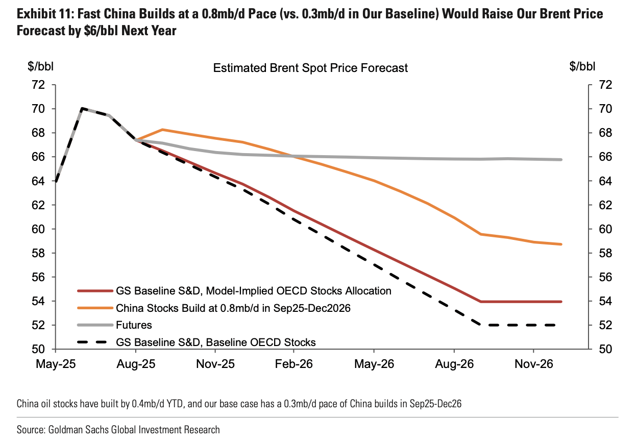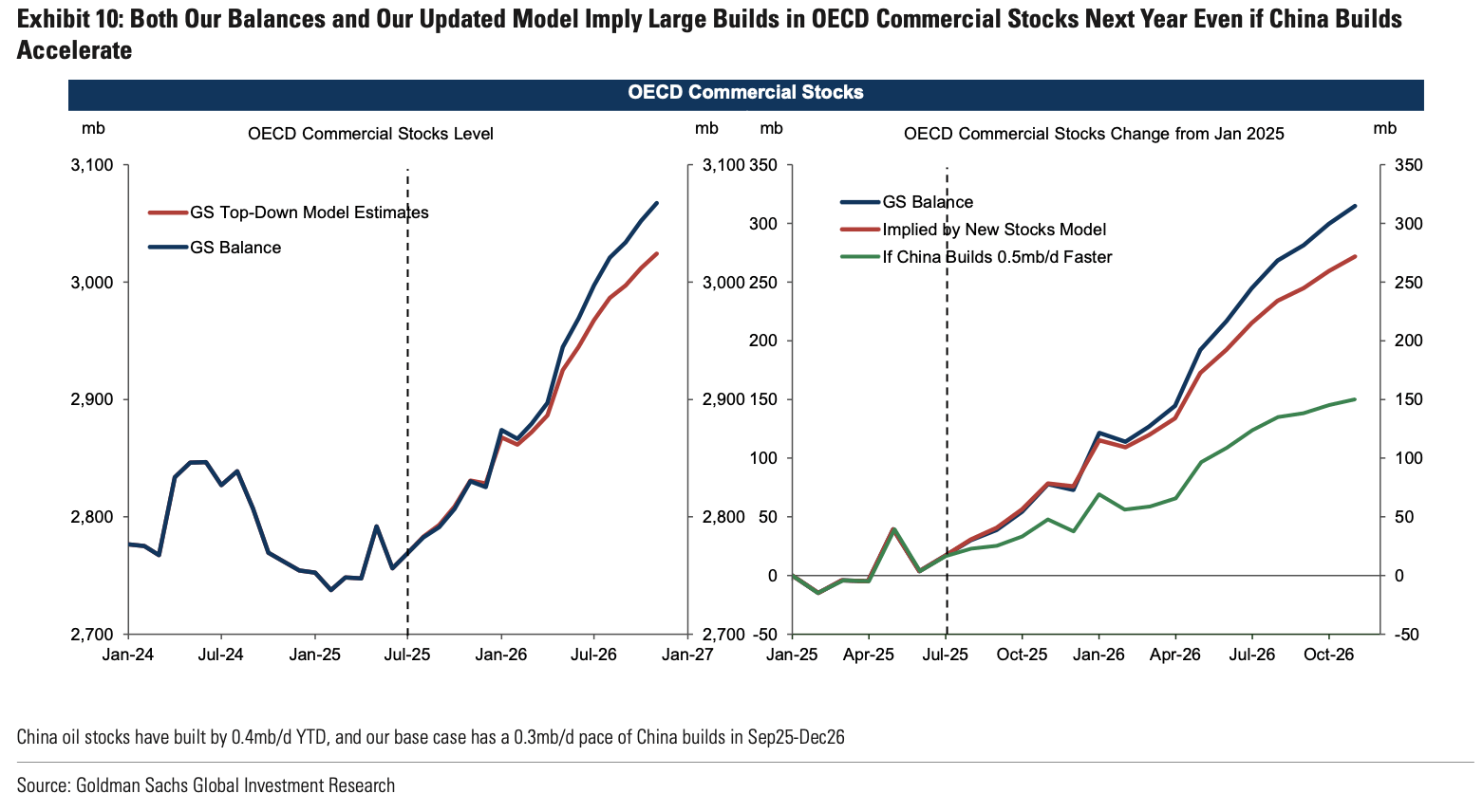 I think it's safe to say that the energy specialists are universally bearish on oil. Goldman published a report today noting that they expect global oil inventories to build 800 million bbls by the end of 2026. They are assuming that ~33% of that will be directed towards visible OECD oil inventories (270 million bbls).