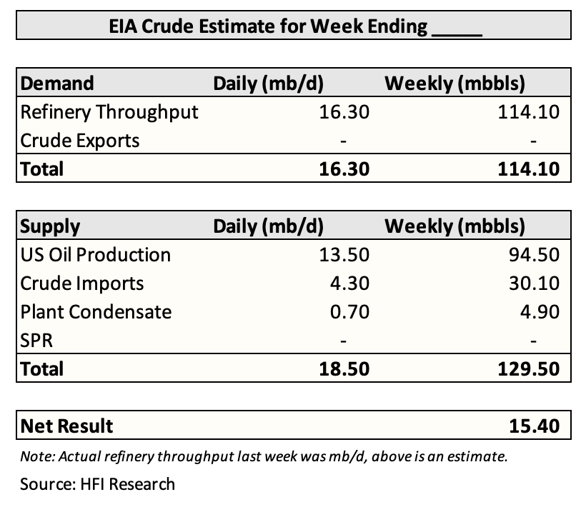 If product exports were also banned, it would further lower US refinery throughput, but for this mental exercise, we will only look at crude.