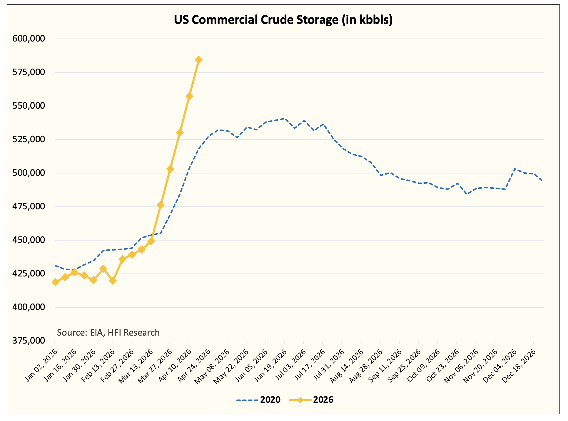 At +15 million bbls per week, we will reach tank top by the first week of May.