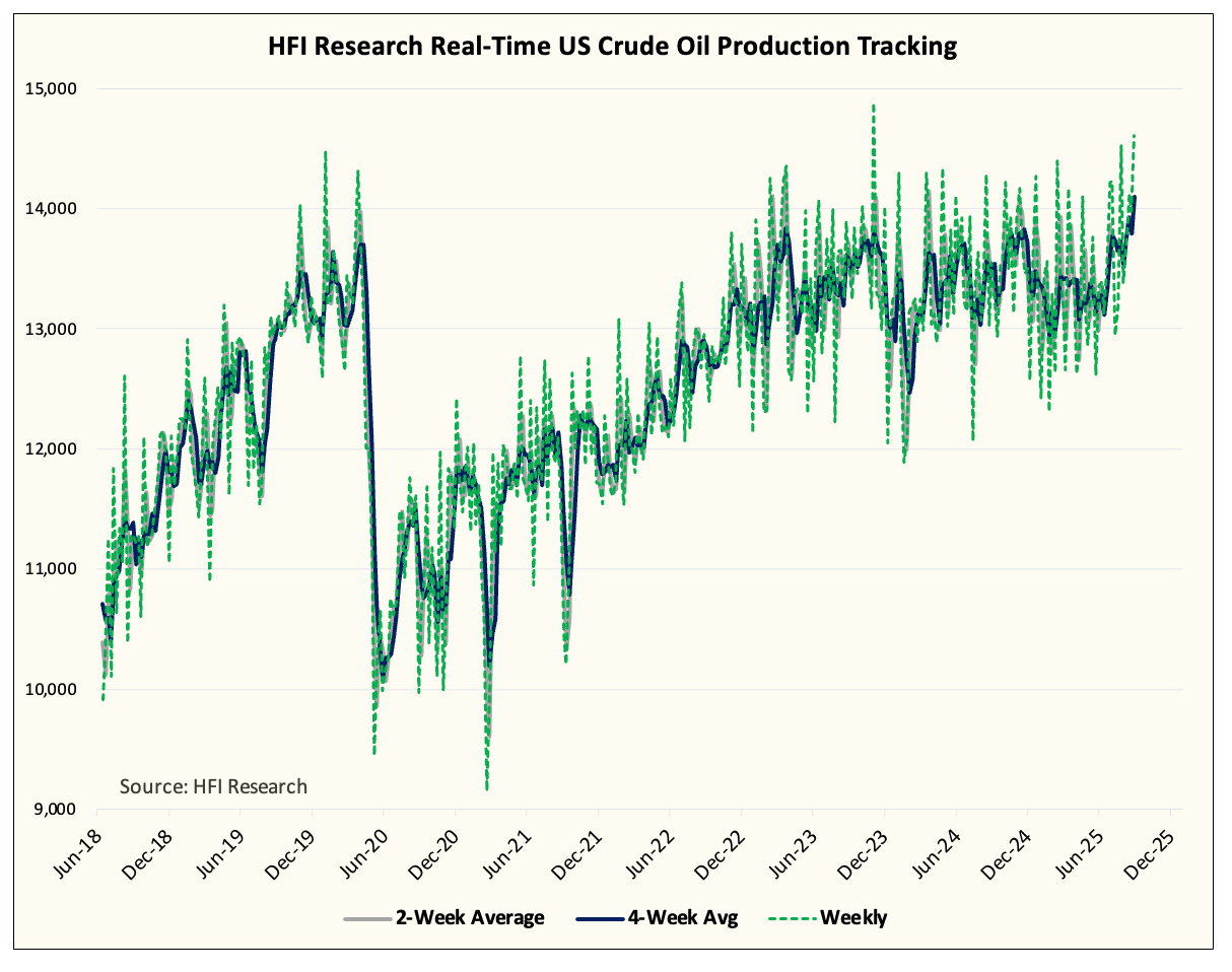 This is the first time since we started tracking real-time US crude oil production that the data is showing +14 million b/d on a 4-week moving average basis.