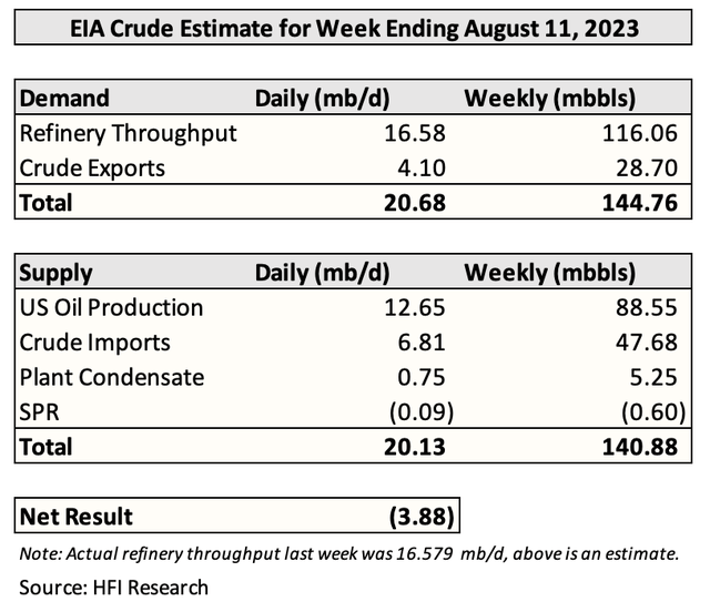 US Crude Storage Outlook - More DrawsHFI ResearchAug 15, 2023∙ Paid4ShareFor the week ending August 11, we have a crude draw of 3.88 million bbls. This includes an SPR build of 600k bbls. A draw of 3.88 million bbls is in-line with the 5-year average draw of 3.421 million bbls.This post is for paid subscribersSubscribeAlready a paid subscriber? Sign inPreviousNext
