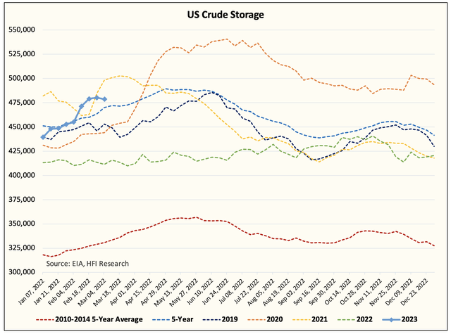 As US refineries finish up maintenance towards the middle of April, elevated crude exports will be needed to prevent further material builds going forward. If so, the Q1 builds won't be as bad as we had originally expected.