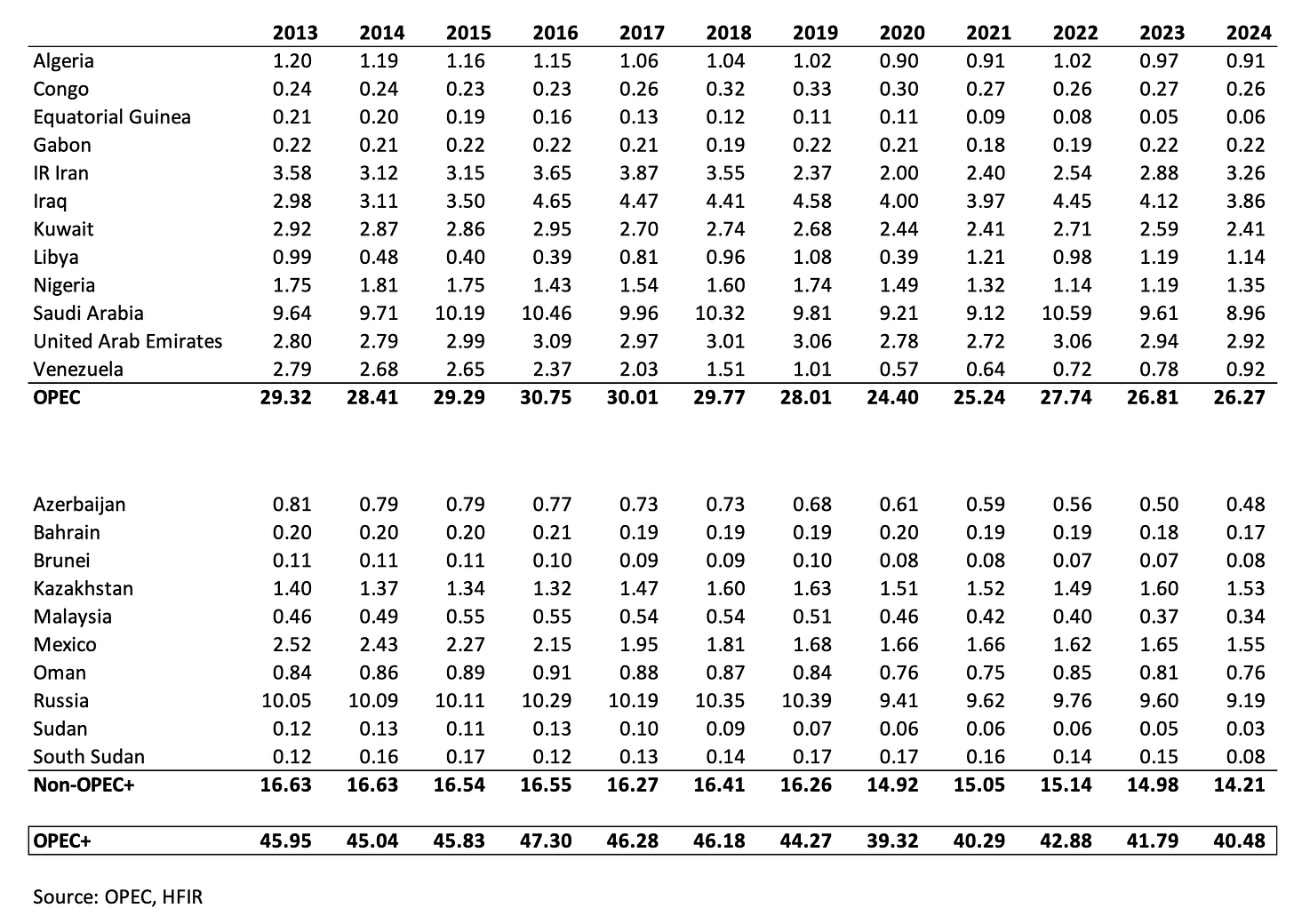 OPEC+ members have agreed to undergo an oil capacity audit that will help determine the production baselines for 2027. In our view, this is the watershed moment that will make the market realize just how low “real” spare capacity is. To highlight just how incredible the supply mismatch is, we created a table using OPEC and IEA crude production data going back to 2013.