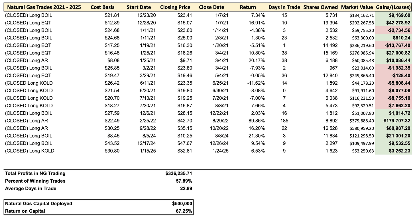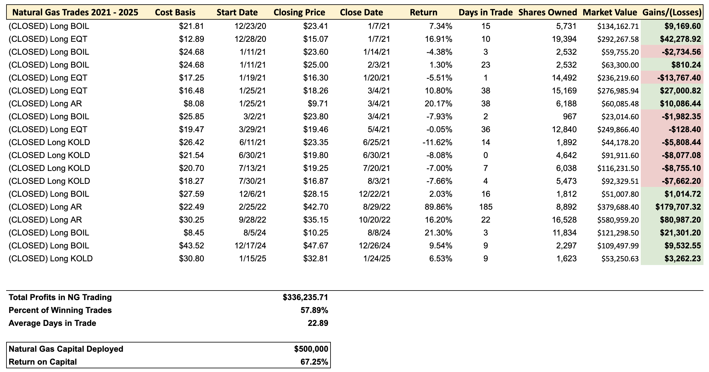 Since the methodology change, here are all the trades we've done in natural gas and natural gas-related equities.