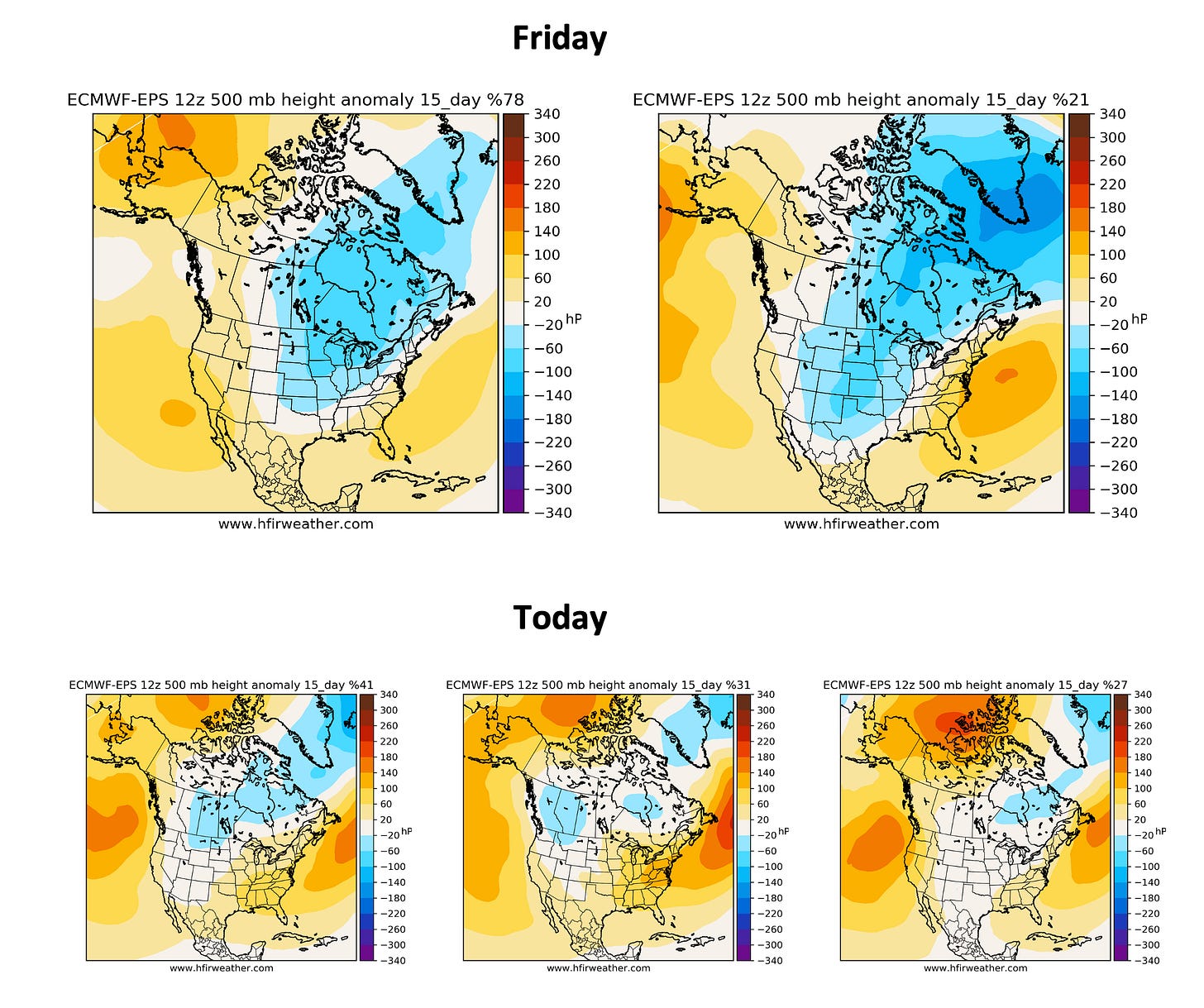 The difference between Friday and today's latest weather model update is night and day. The outlook is very bearish with the 15-day going from a "cold blast" potential to warmer than normal.