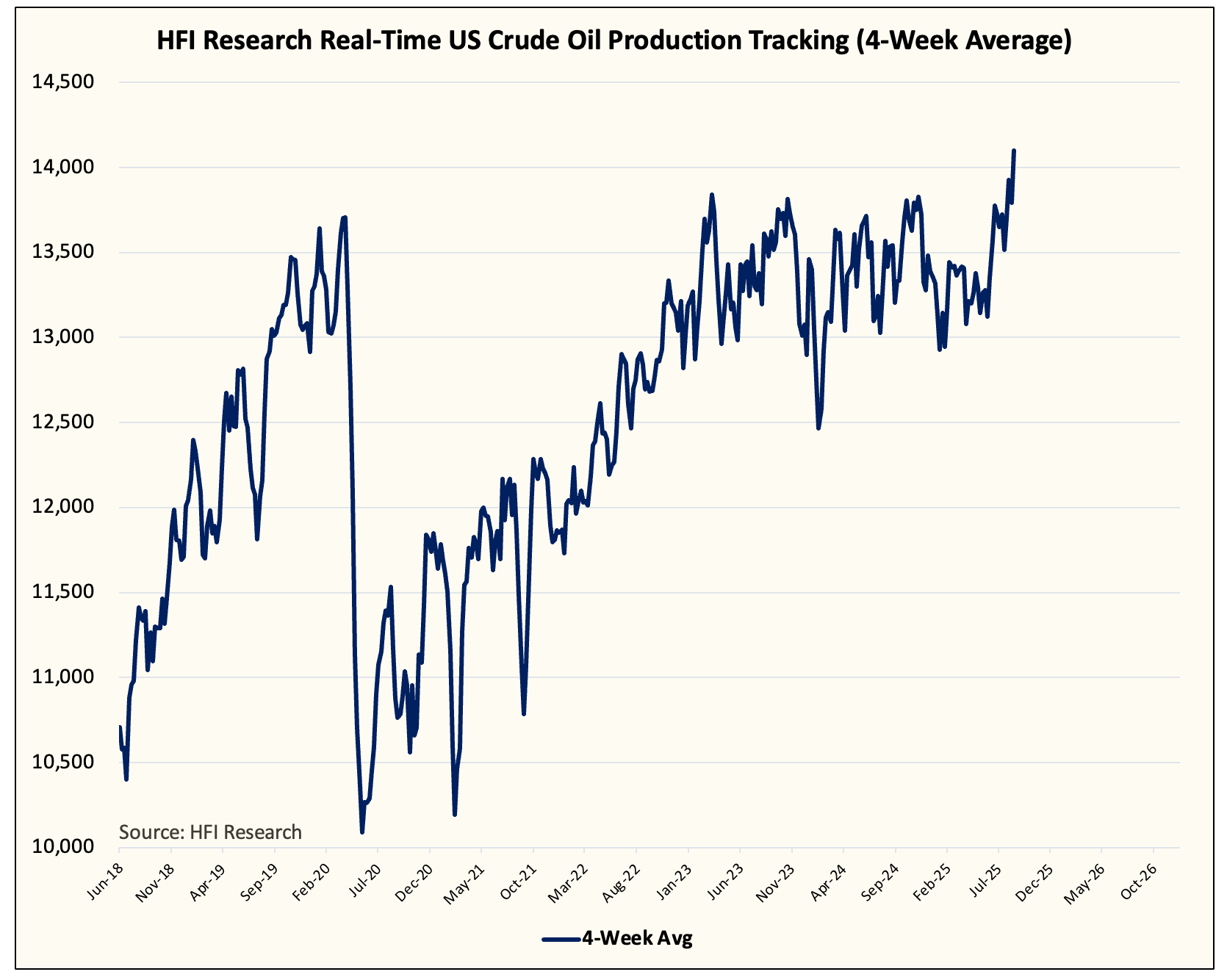 This is the first time since we started tracking real-time US crude oil production that the data is showing +14 million b/d on a 4-week moving average basis.