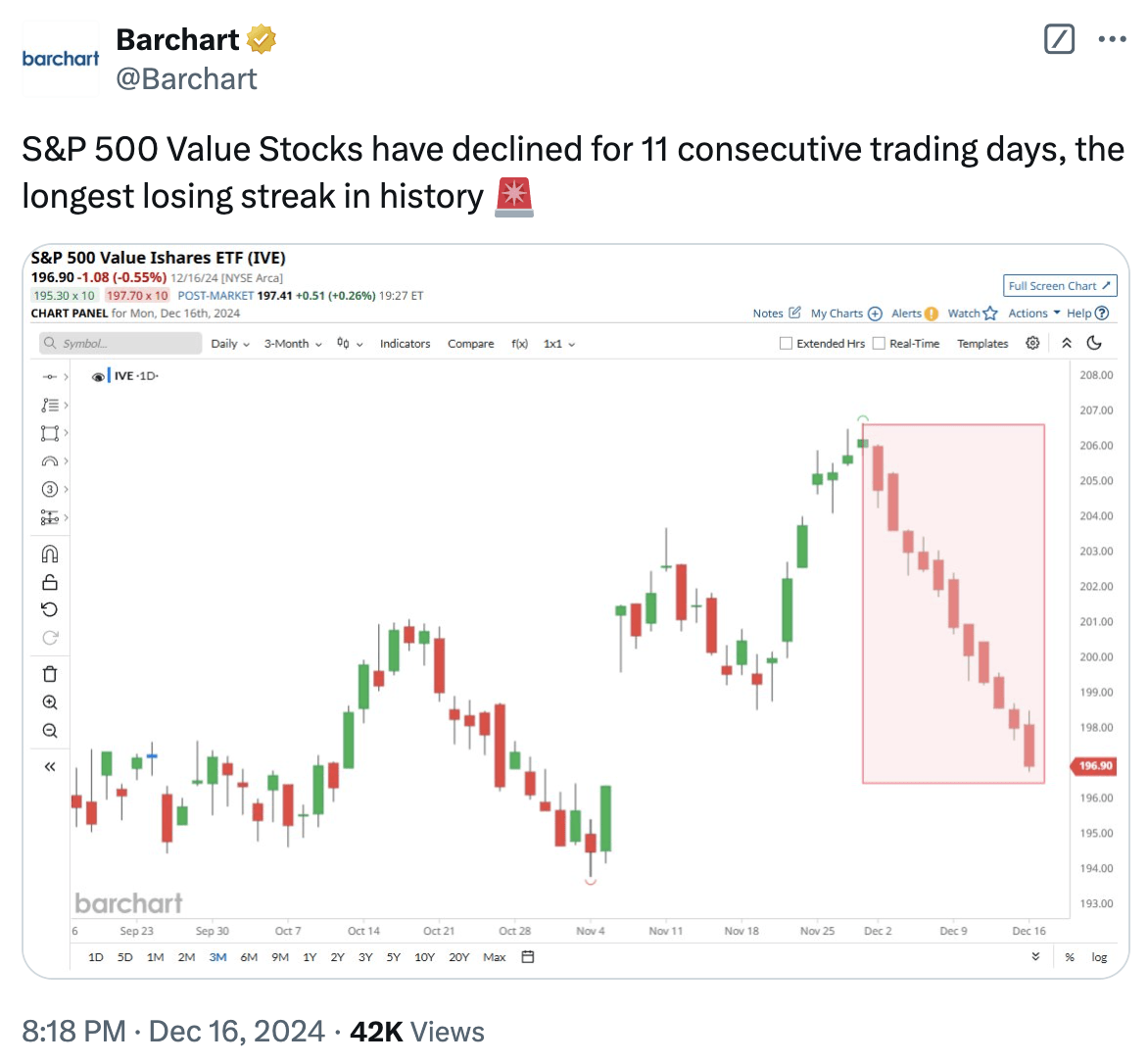 What we are witnessing today is the endgame. Value stocks are being discarded left and right. In fact, I had no idea that value stocks fell for 11 consecutive trading days.