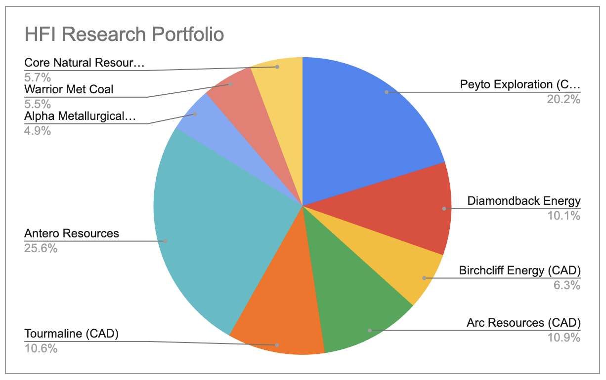 For the HFIR Natural Gas Portfolio, Antero is now the largest position with Peyto as the 2nd largest.