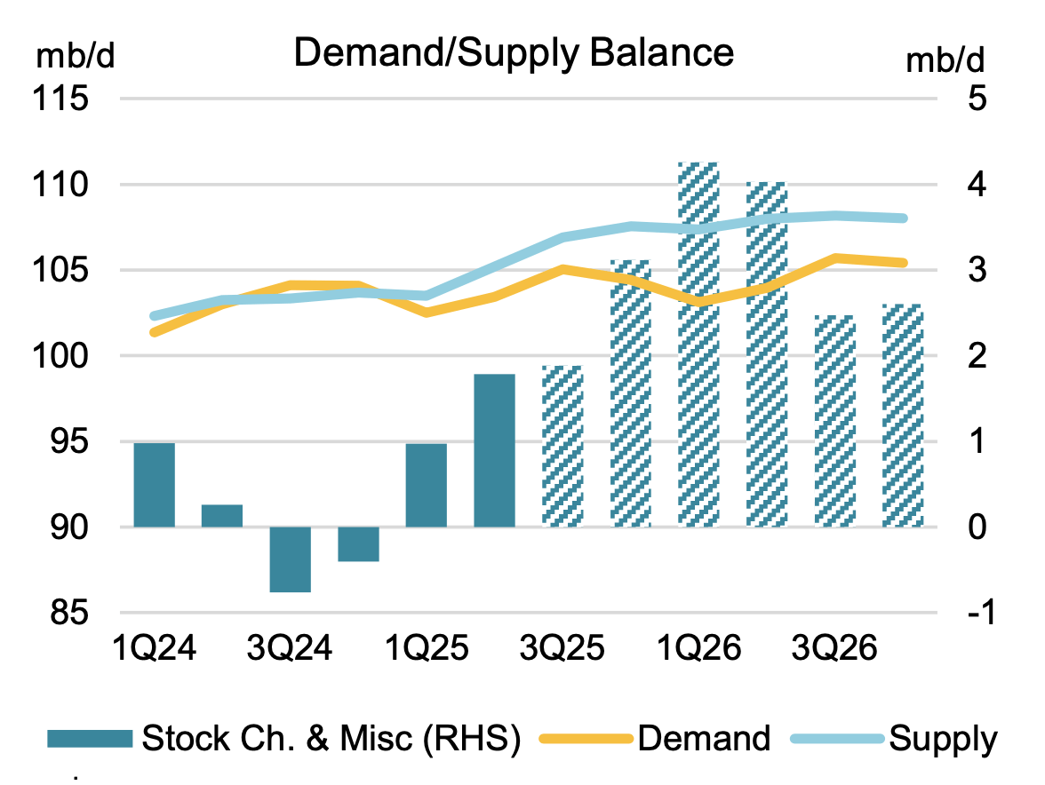 Markets have a funny way of changing the prevailing narrative via the price action. We are now at the start of Q4 where sell-side analysts are expecting monstrous oil inventory builds to the tune of ~3 million b/d. IEA, infamously, published in its recent oil market report that Q4 and Q1 2026 oil market surpluses will be as high as +3 and +4 million b/d, respectively.