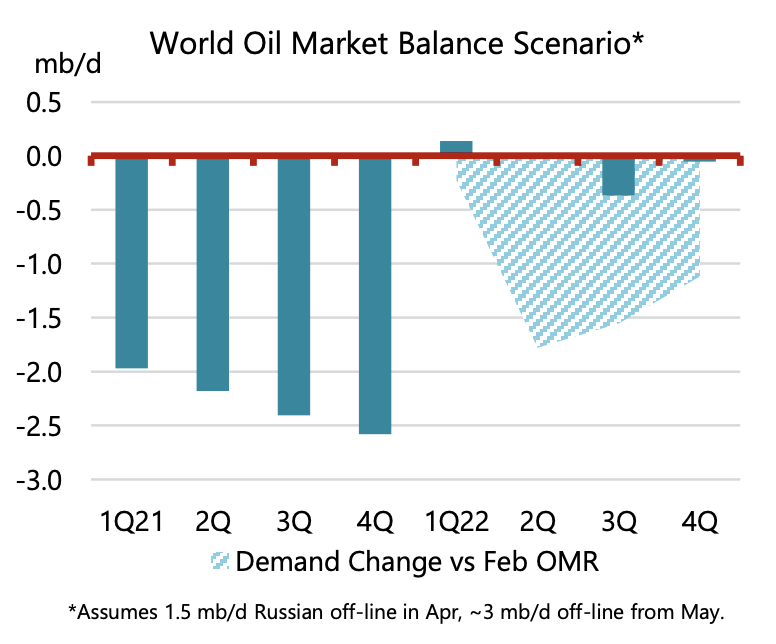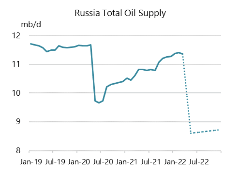 In particular, it noted that if Russian oil production declines, global oil inventory balances would be steeply in deficit.