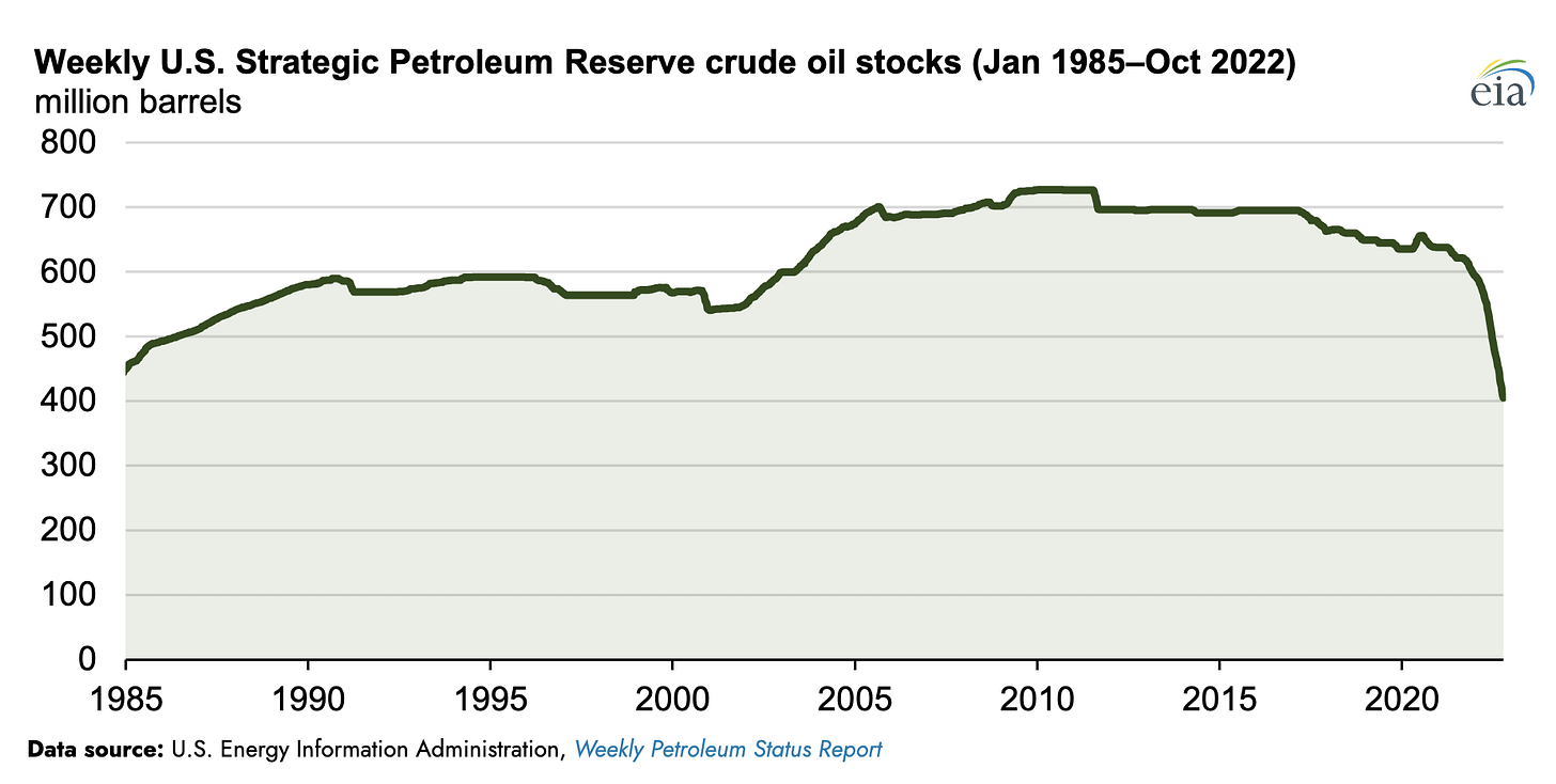 The subsequent analysis prompted IEA to coordinate a global SPR release of 250+ million bbls. US crude storage in the SPR subsequently dropped to multi-decade lows to compensate for the IEA’s deficit analysis.