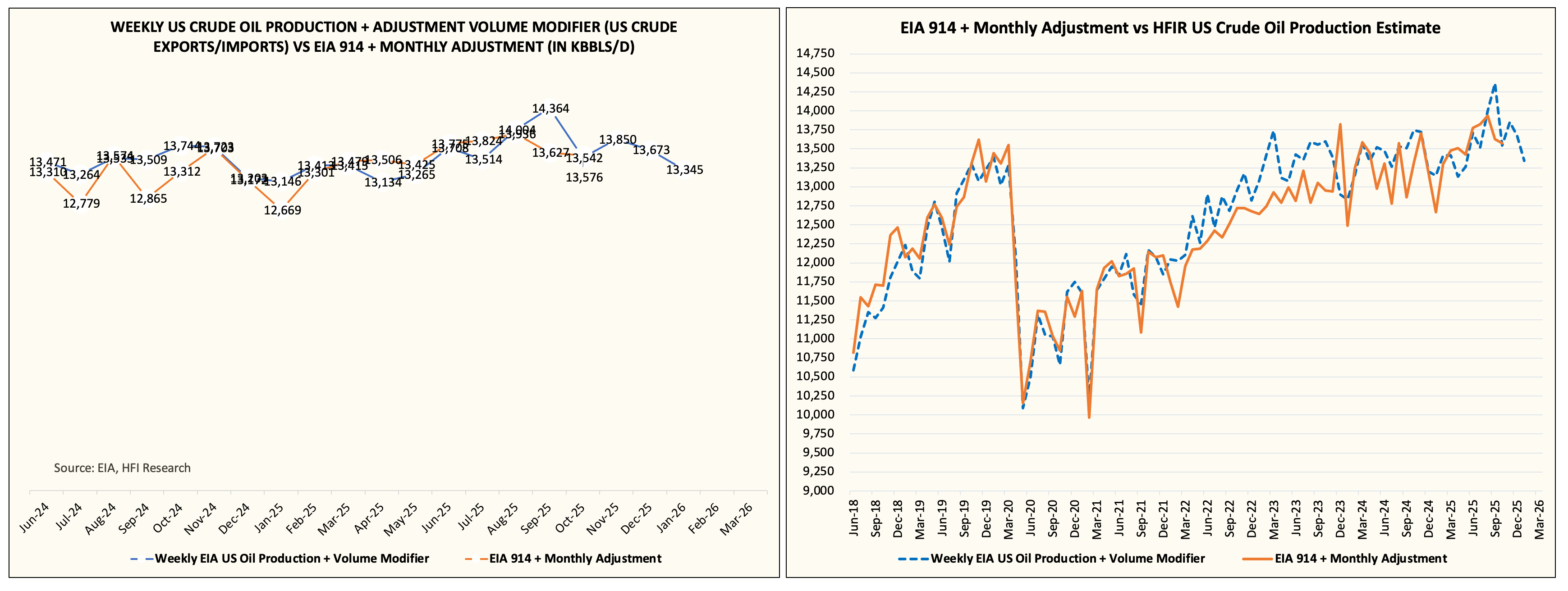 US crude oil production finished January at ~12 million b/d, which brought down the monthly average to ~13.3 million b/d.