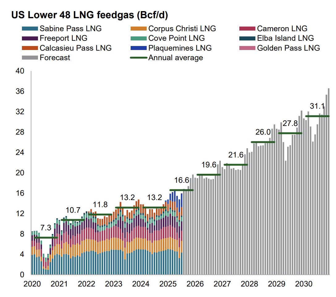 So even though the market is fixated on the elevated production level today (high ~107 Bcf/d), we are still well short of the production needed to meet the incoming increase in export demand.