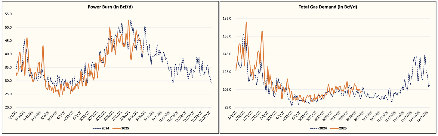 To put the power burn demand loss into perspective, from August 1 to 12, power burn demand was down ~7.3 Bcf/d y-o-y.