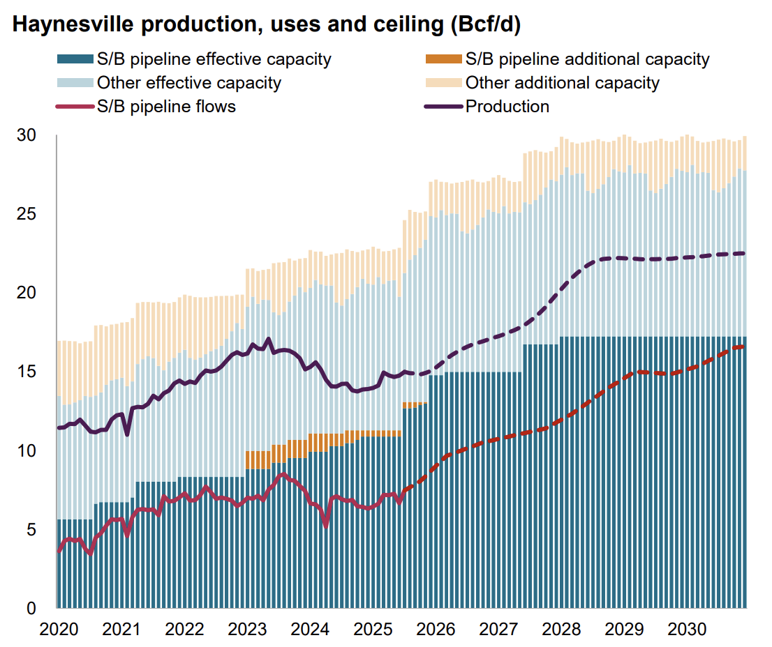 Because we will finish April at ~1.56 Tcf in storage, we will need to inject enough into gas storage to avoid another shortfall in the coming winter. Since we noted that Northeast and Permian gas production are largely capped until the end of 2026, most of the production increase will have to come from Haynesville.