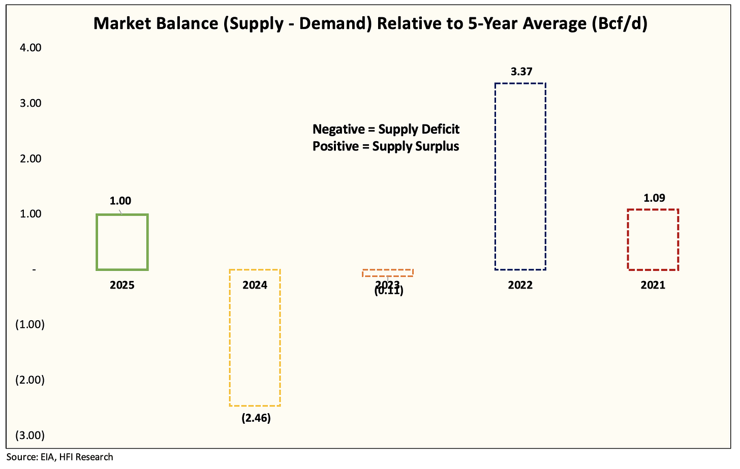 This puts the oversupply at ~1 Bcf/d.