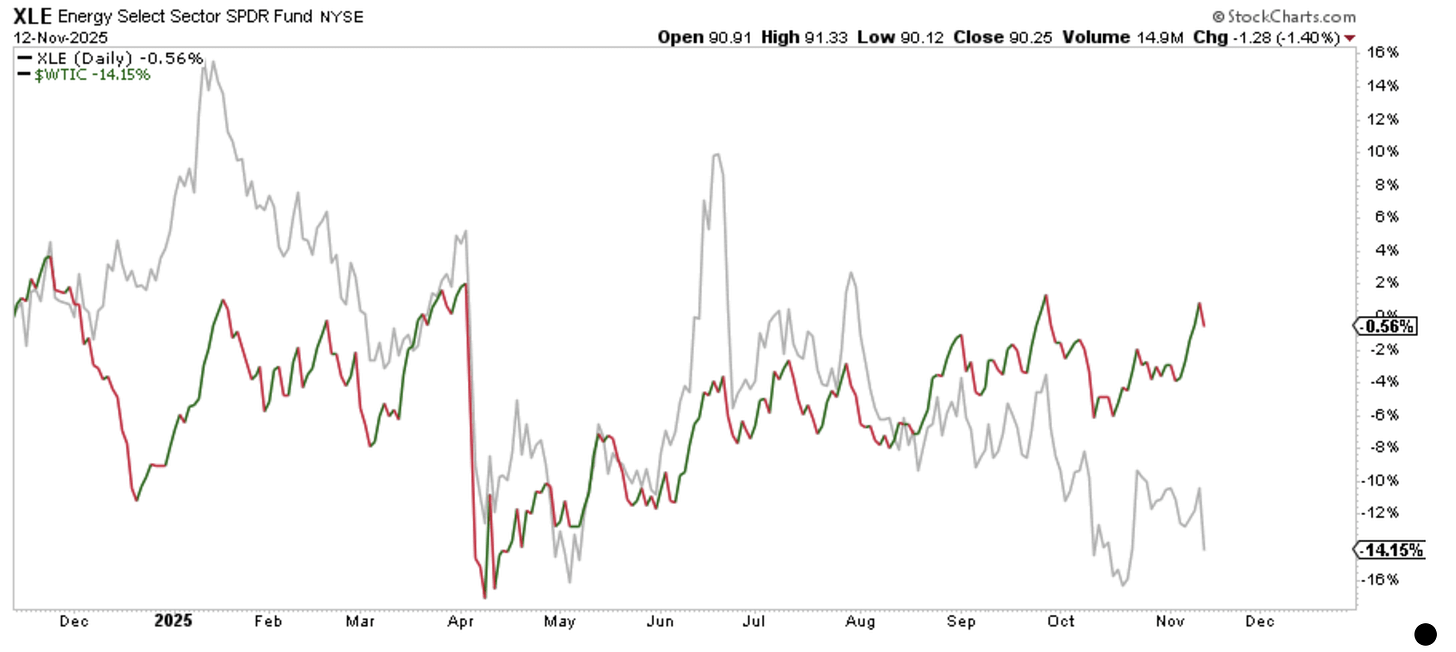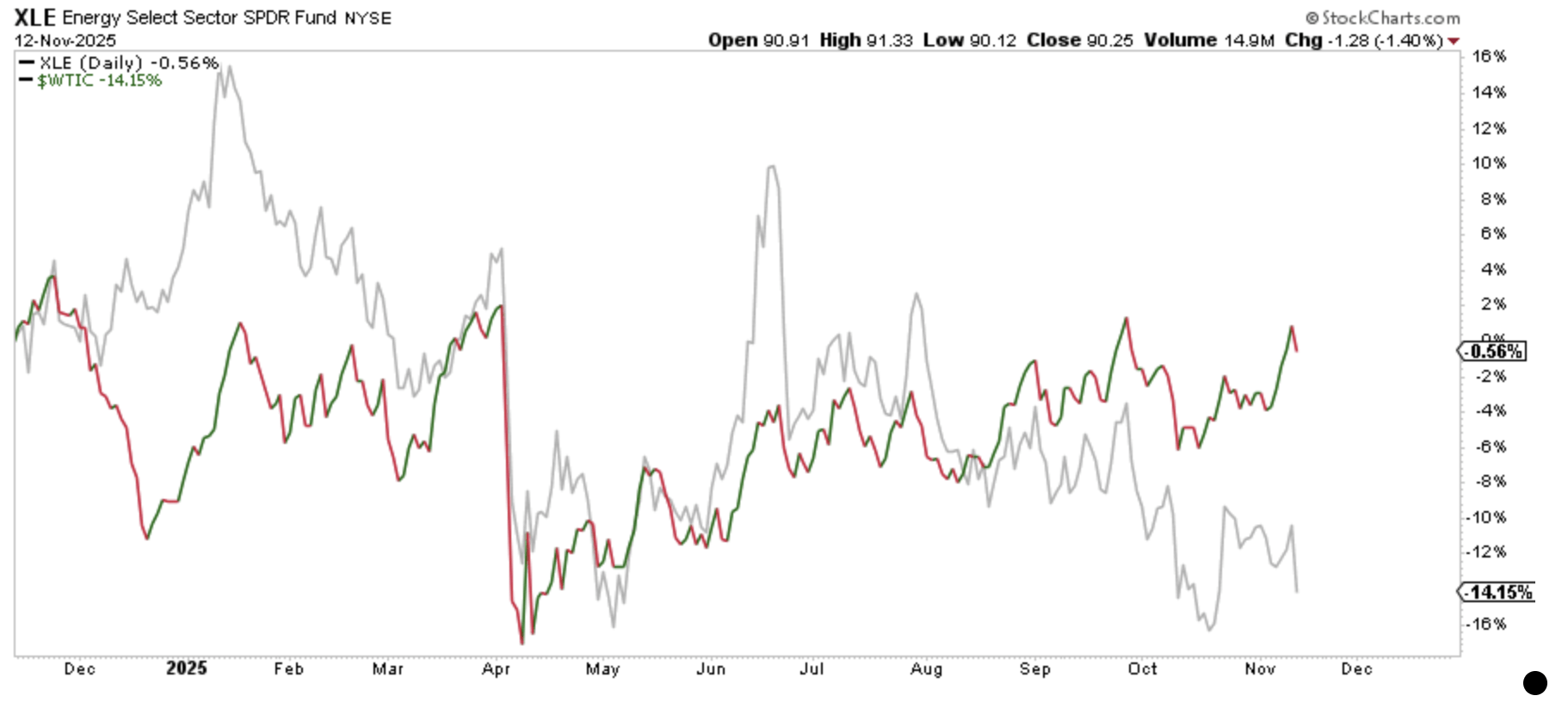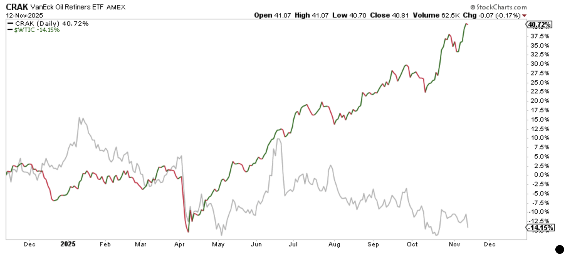 XLE encompasses oil majors and refineries. The oversupply we are seeing today is in crude, while refining margins are elevated thanks to Ukraine’s attacks on Russia’s refineries.