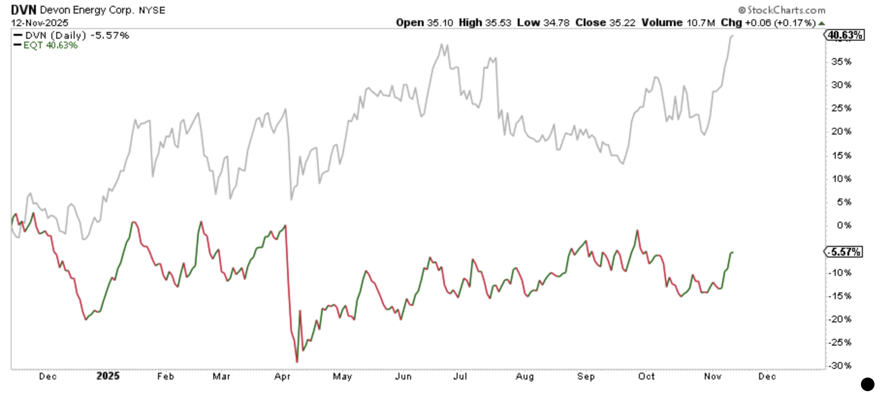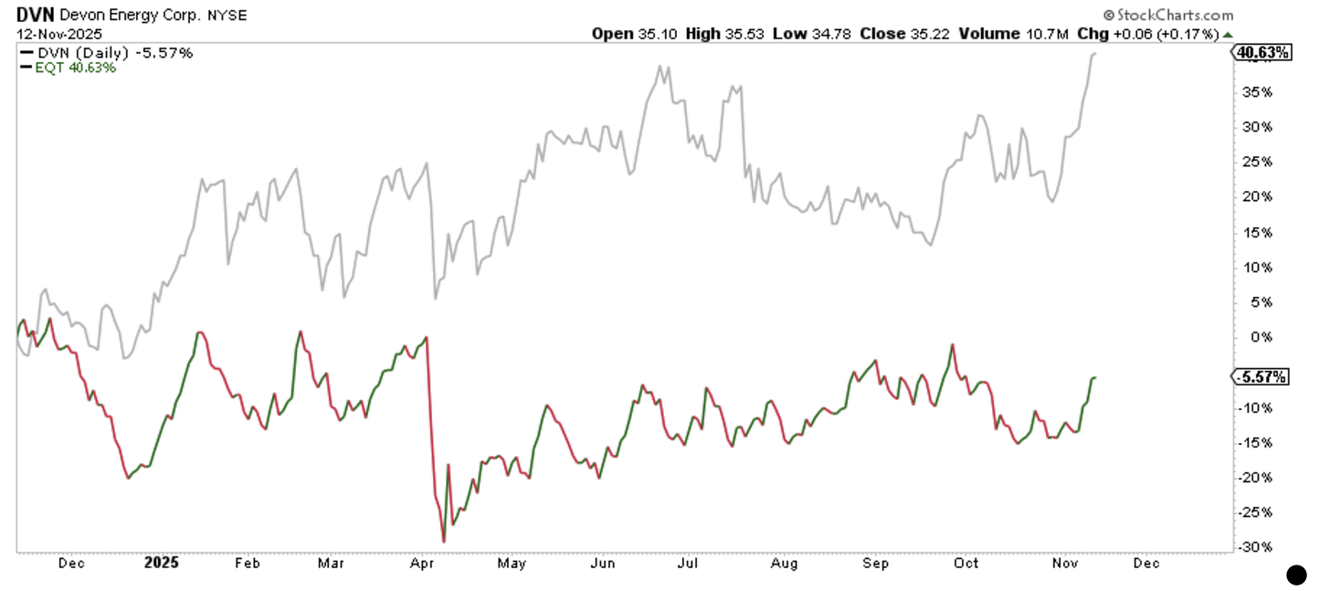 This is why, on a relative basis, you are seeing refinery stocks absolutely destroy WTI. And this is another reason why oil producer stocks have materially underperformed their natural gas counterparts.