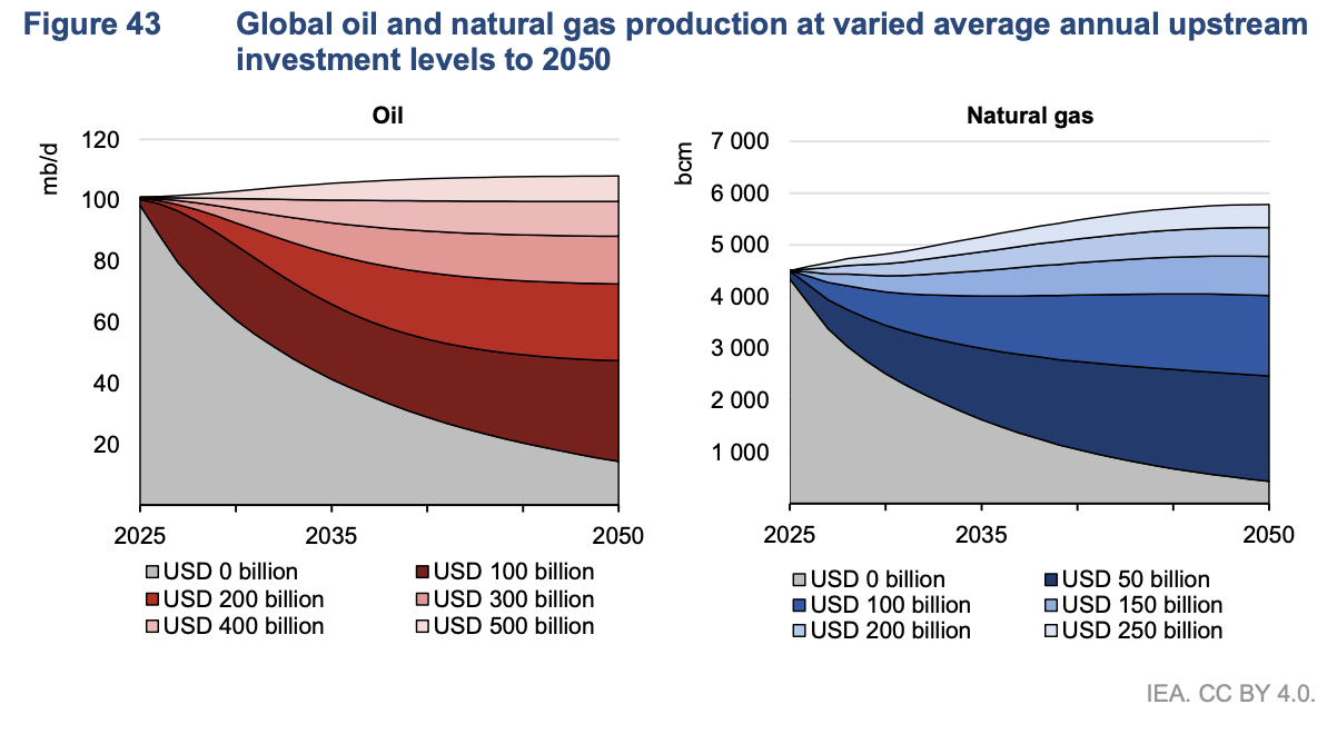 In conclusion, the IEA basically admitted that the world needs to keep spending a vast amount of capex to keep production flat. Here's a chart depicting what happens if global capex dropped: